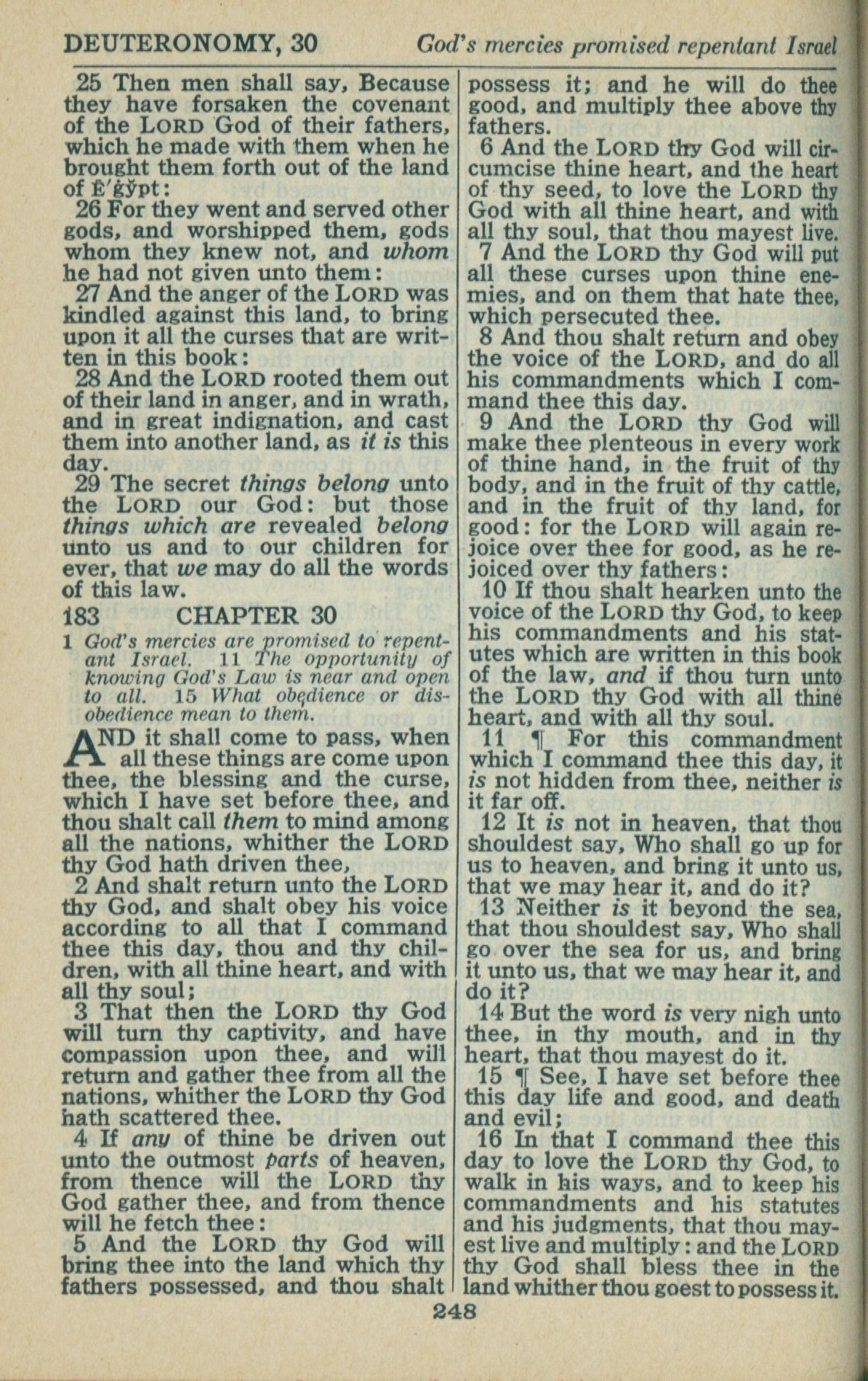 1946年King James Version 申命記 29 章 25 節到 30 章 16 節
