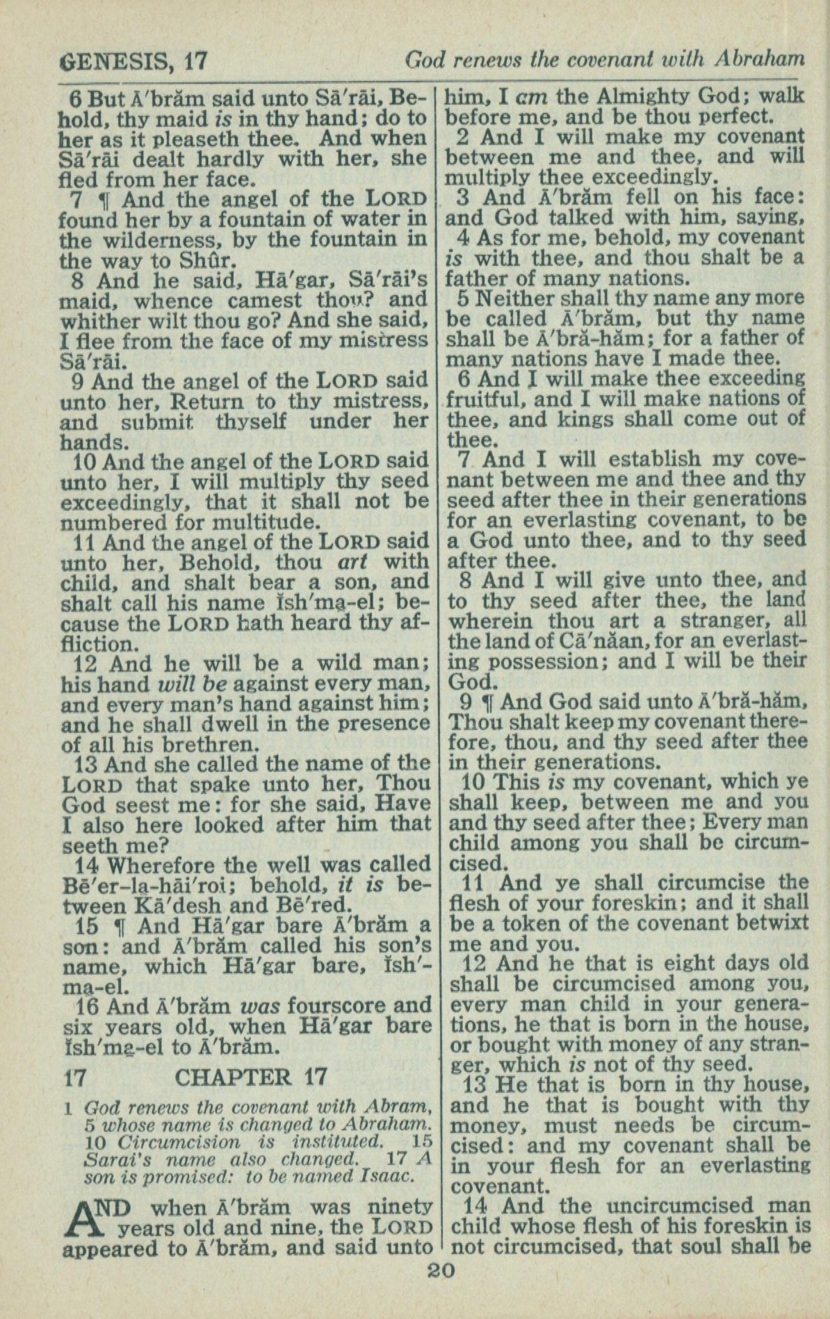 1946年King James Version 創世記 16 章 6 節到 17 章 14 節