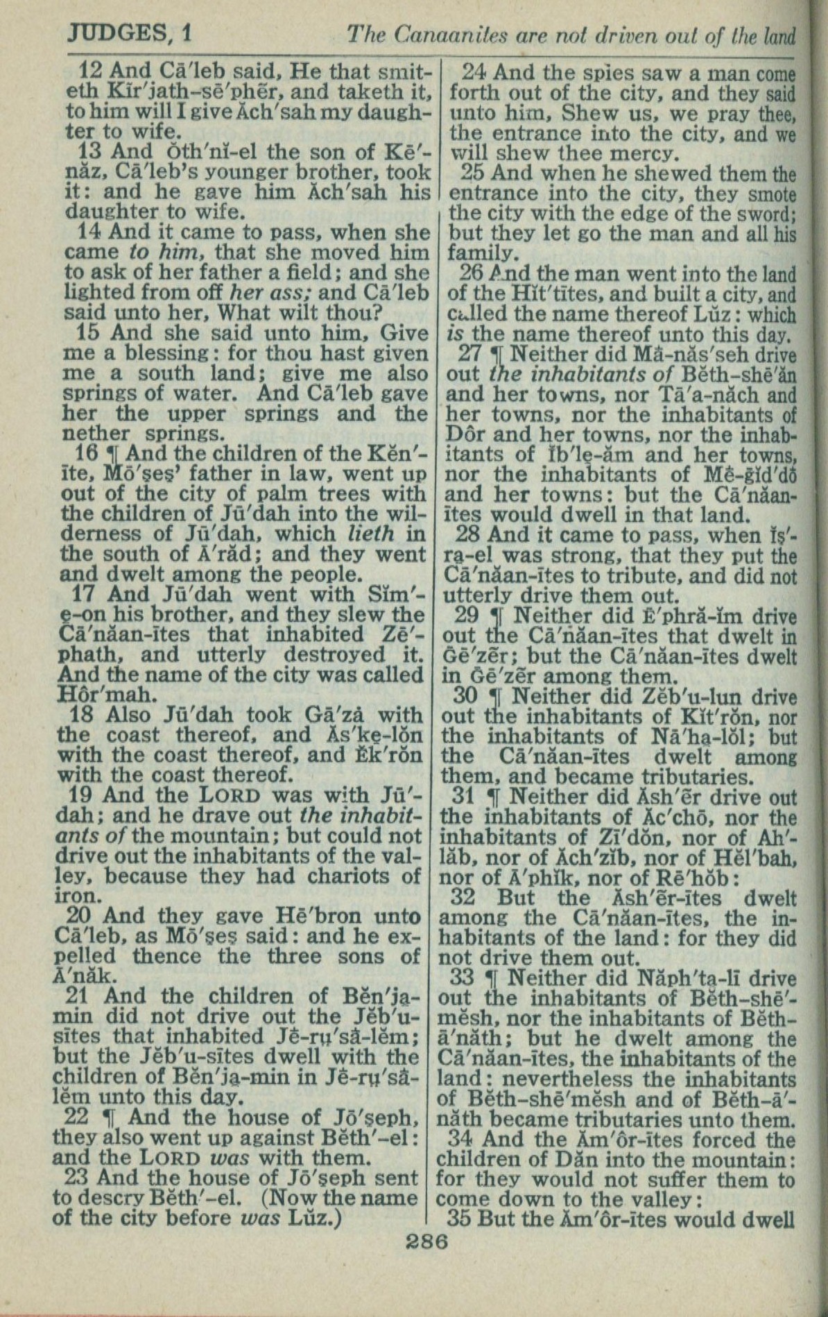 1946年King James Version 士師記 1 章 12 節到 1 章 35 節