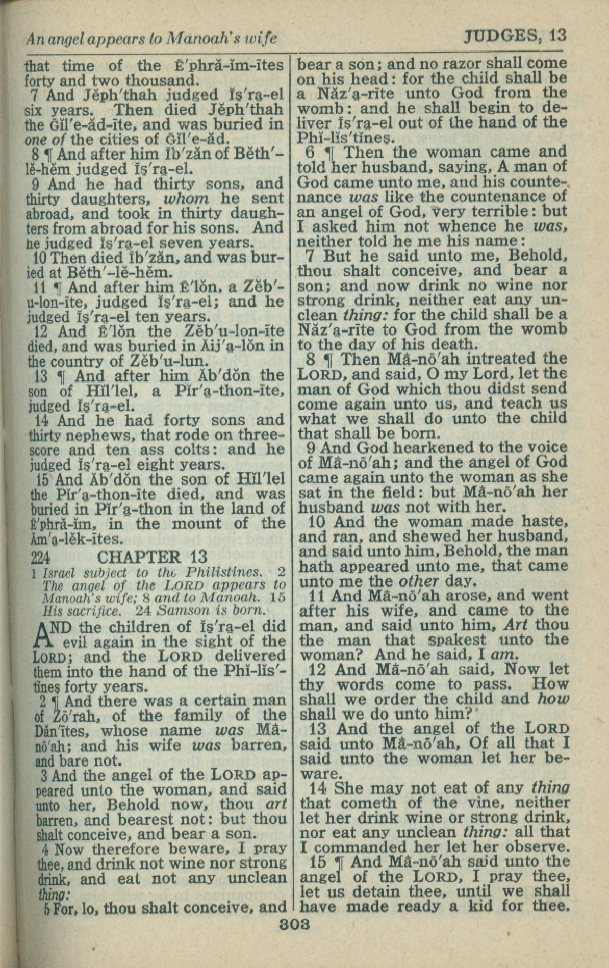 1946年King James Version 士師記 12 章 7 節到 13 章 15 節