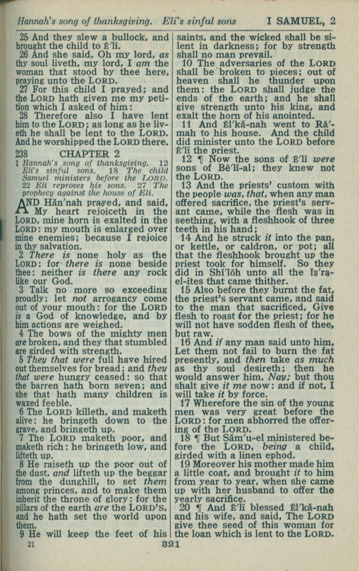 1946年King James Version 撒母耳記上 1 章 25 節到 2 章 20 節