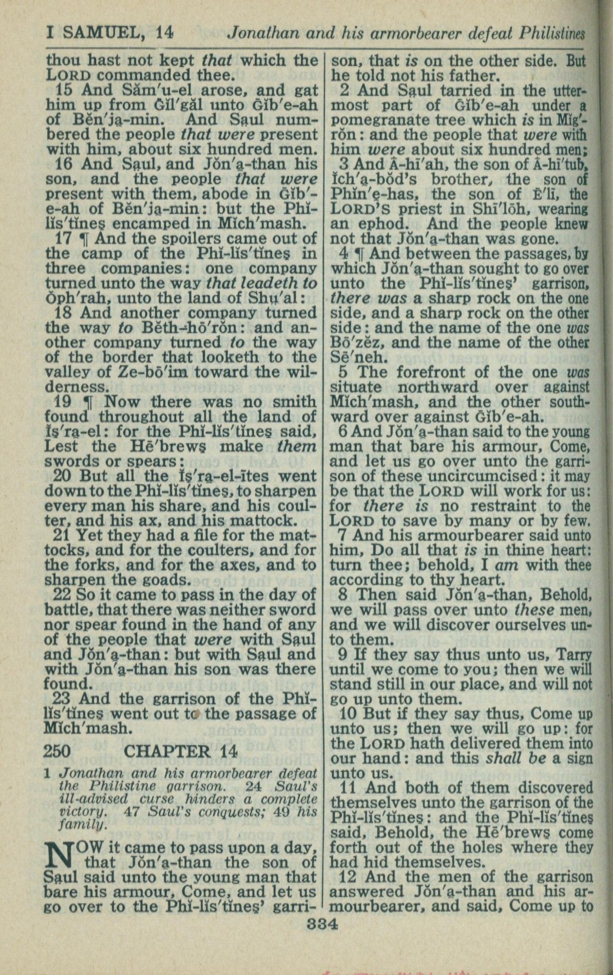 1946年King James Version 撒母耳記上 13 章 15 節到 14 章 12 節