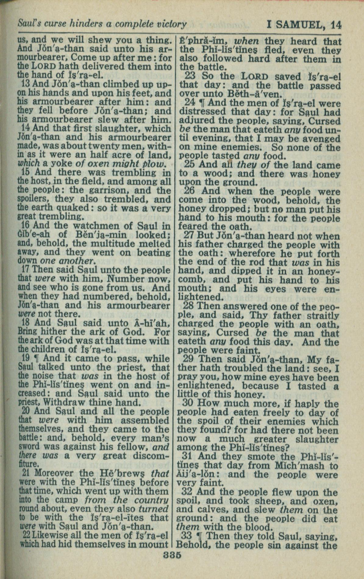 1946年King James Version 撒母耳記上 14 章 13 節到 14 章 33 節