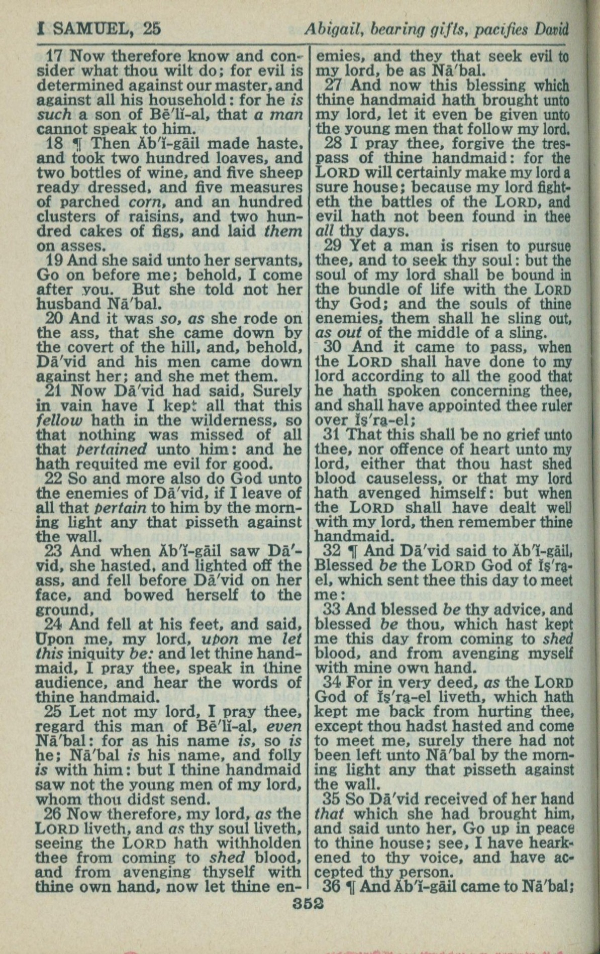 1946年King James Version 撒母耳記上 25 章 17 節到 25 章 35 節