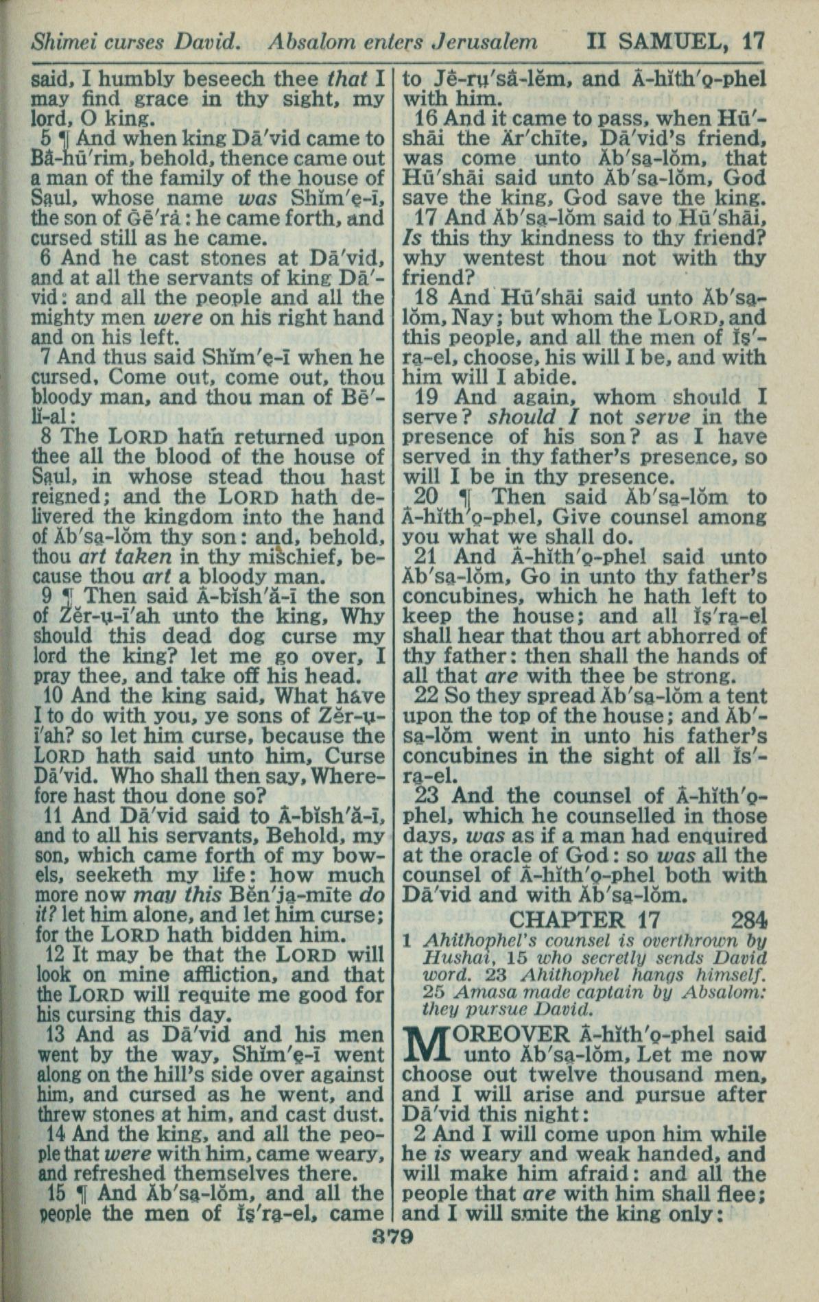 1946年King James Version 撒母耳記下 16 章 5 節到 17 章 2 節