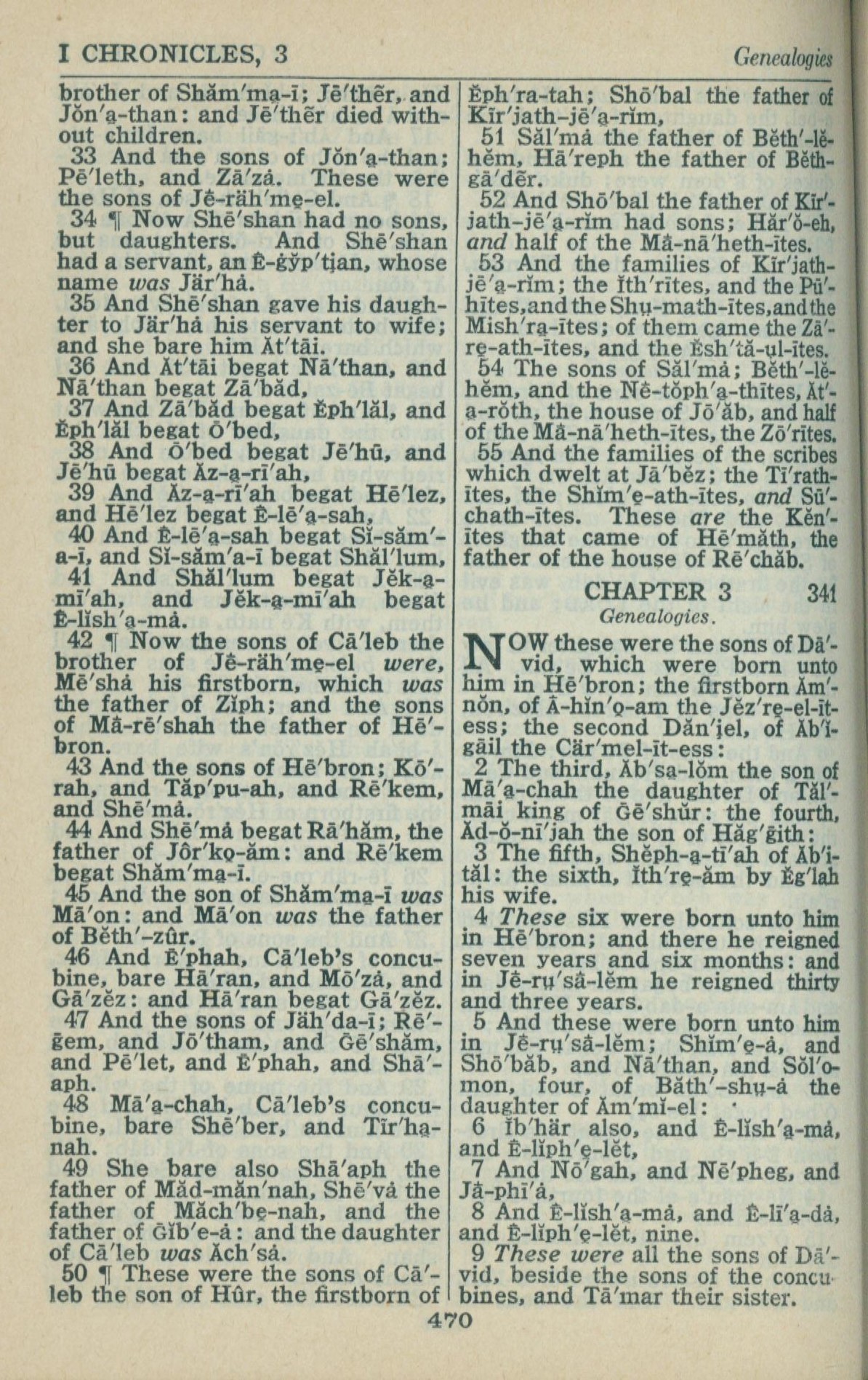 1946年King James Version 歷代志上 2 章 33 節到 3 章 9 節