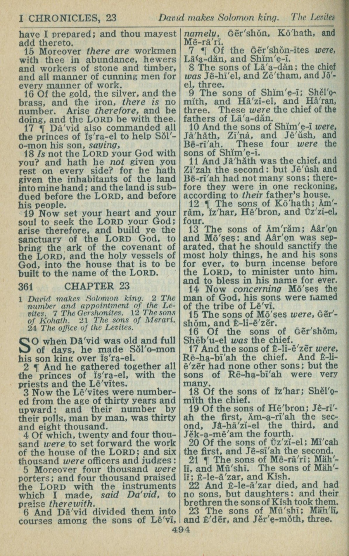 1946年King James Version 歷代志上 22 章 15 節到 23 章 23 節