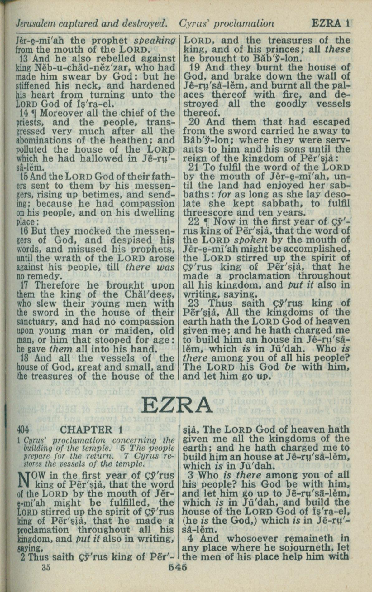1946年King James Version 以斯拉記 1 章 1 節到 1 章 4 節