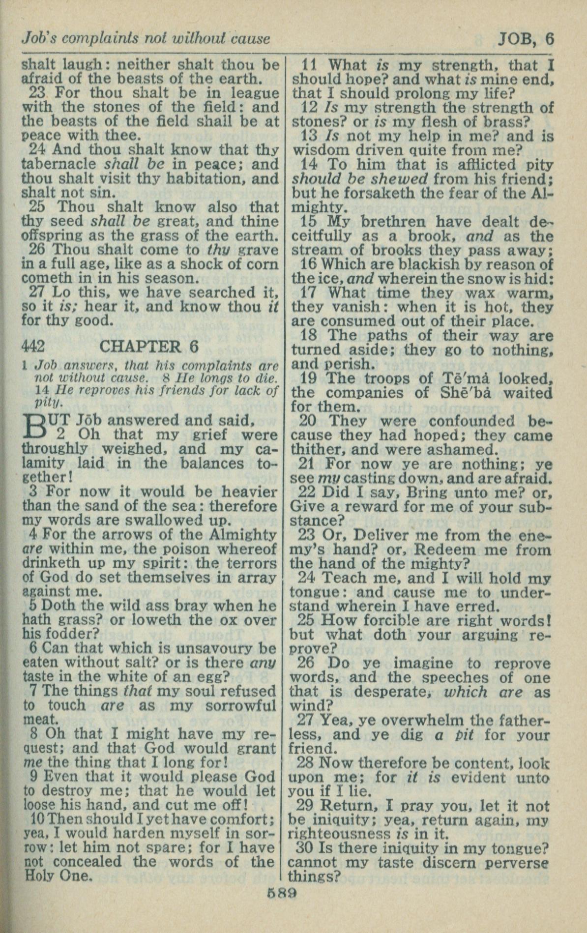 1946年King James Version 約伯記 5 章 22 節到 6 章 30 節