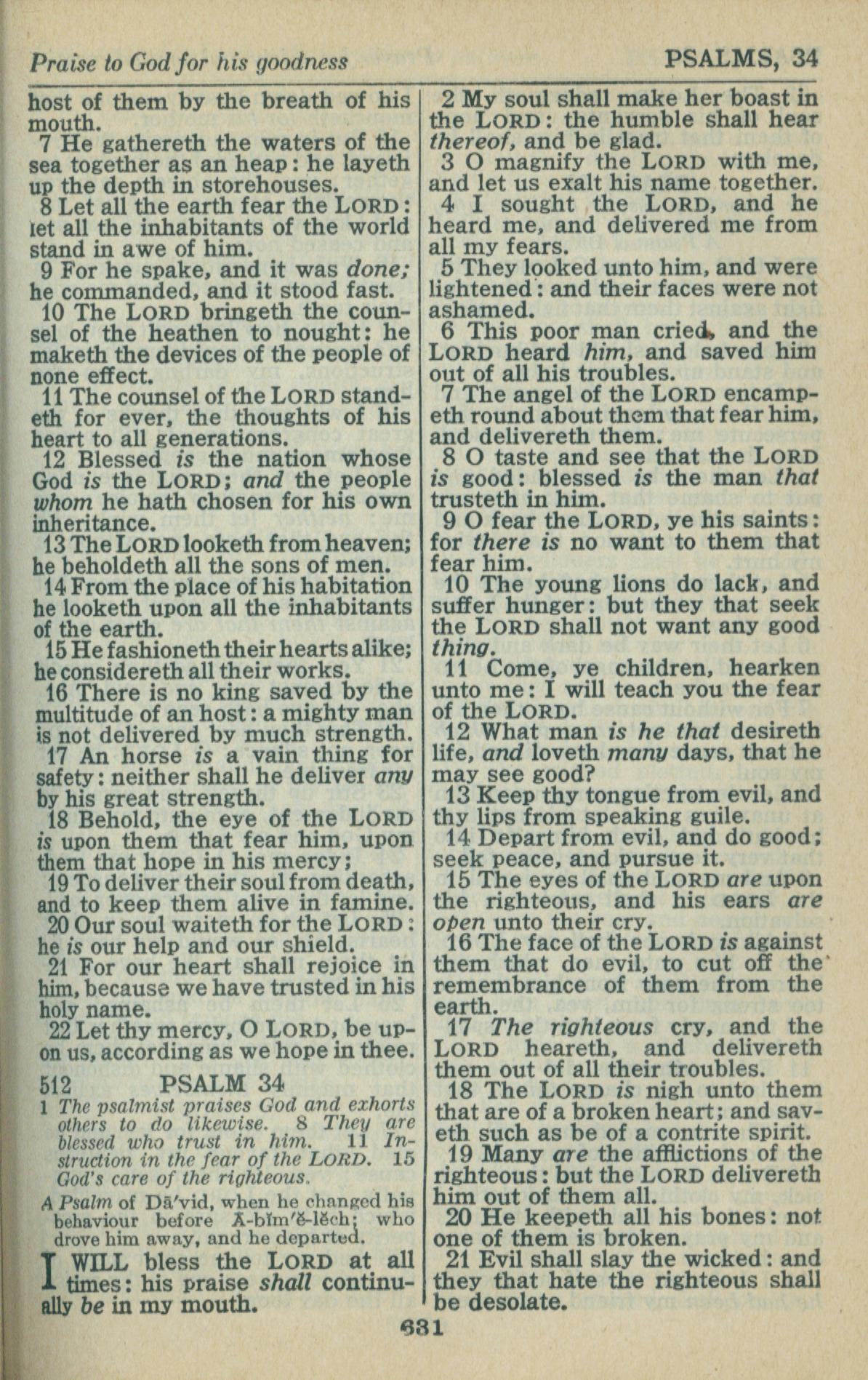1946年King James Version 詩篇 33 章 7 節到 34 章 21 節