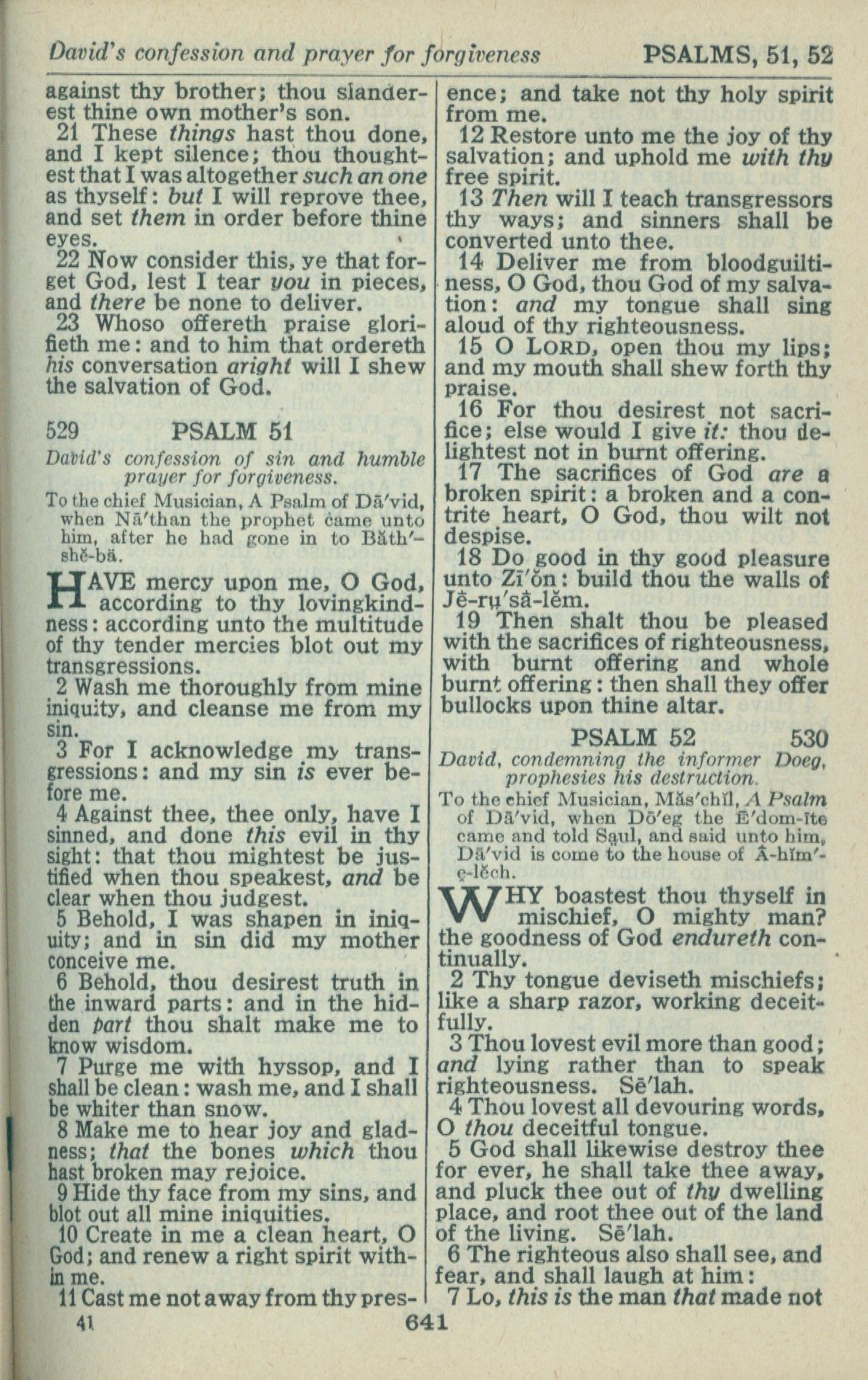 1946年King James Version 詩篇 50 章 21 節到 52 章 7 節