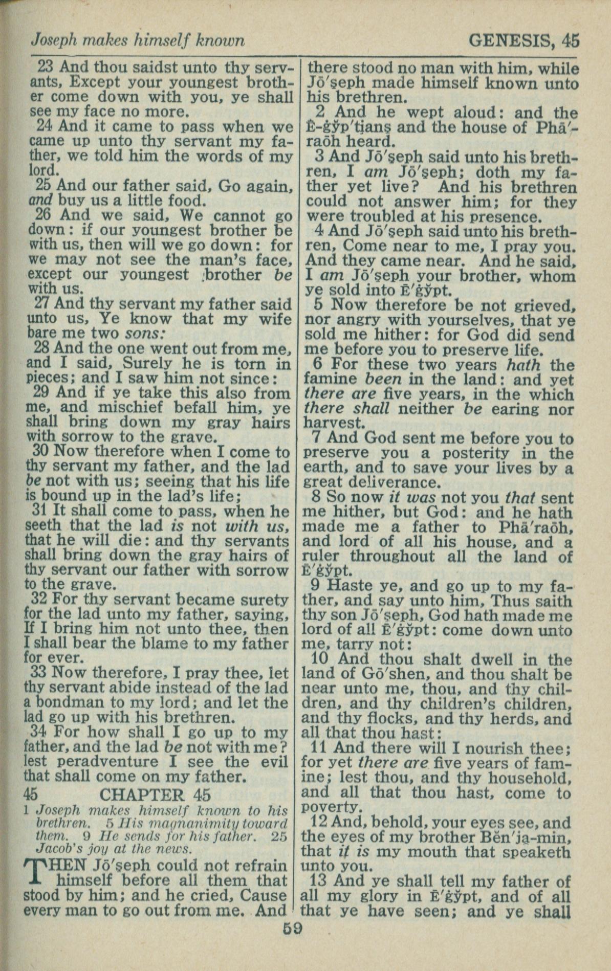 1946年King James Version 創世記 44 章 23 節到 45 章 13 節