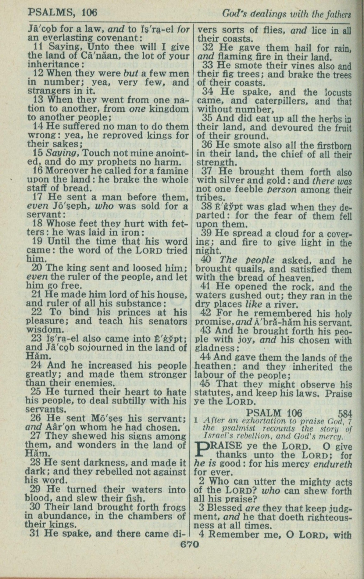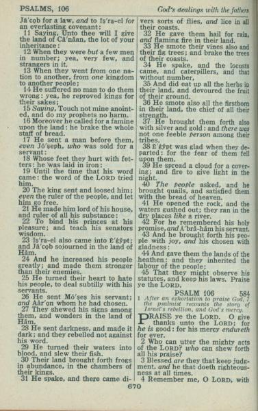 1946年King James Version 詩篇 105 章 11 節到 106 章 4 節