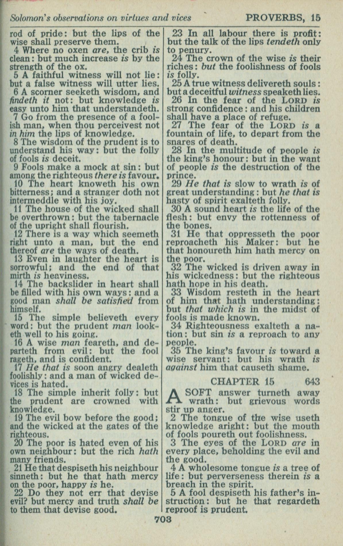 1946年King James Version 箴言 14 章 4 節到 15 章 5 節