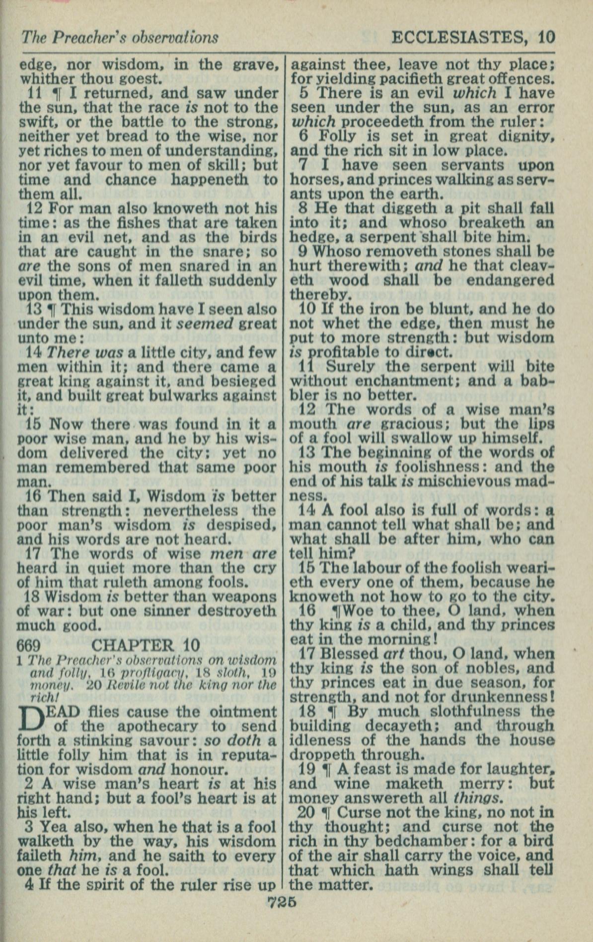 1946年King James Version 傳道書 9 章 11 節到 10 章 20 節