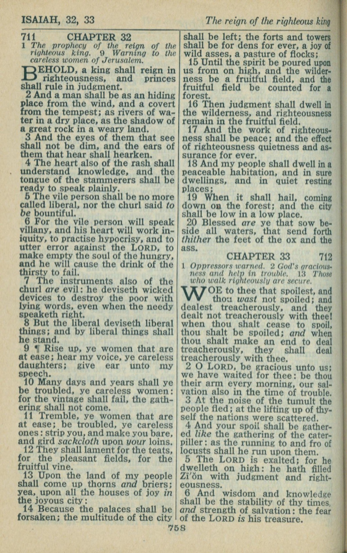 1946年King James Version 以賽亞書 32 章 1 節到 33 章 6 節