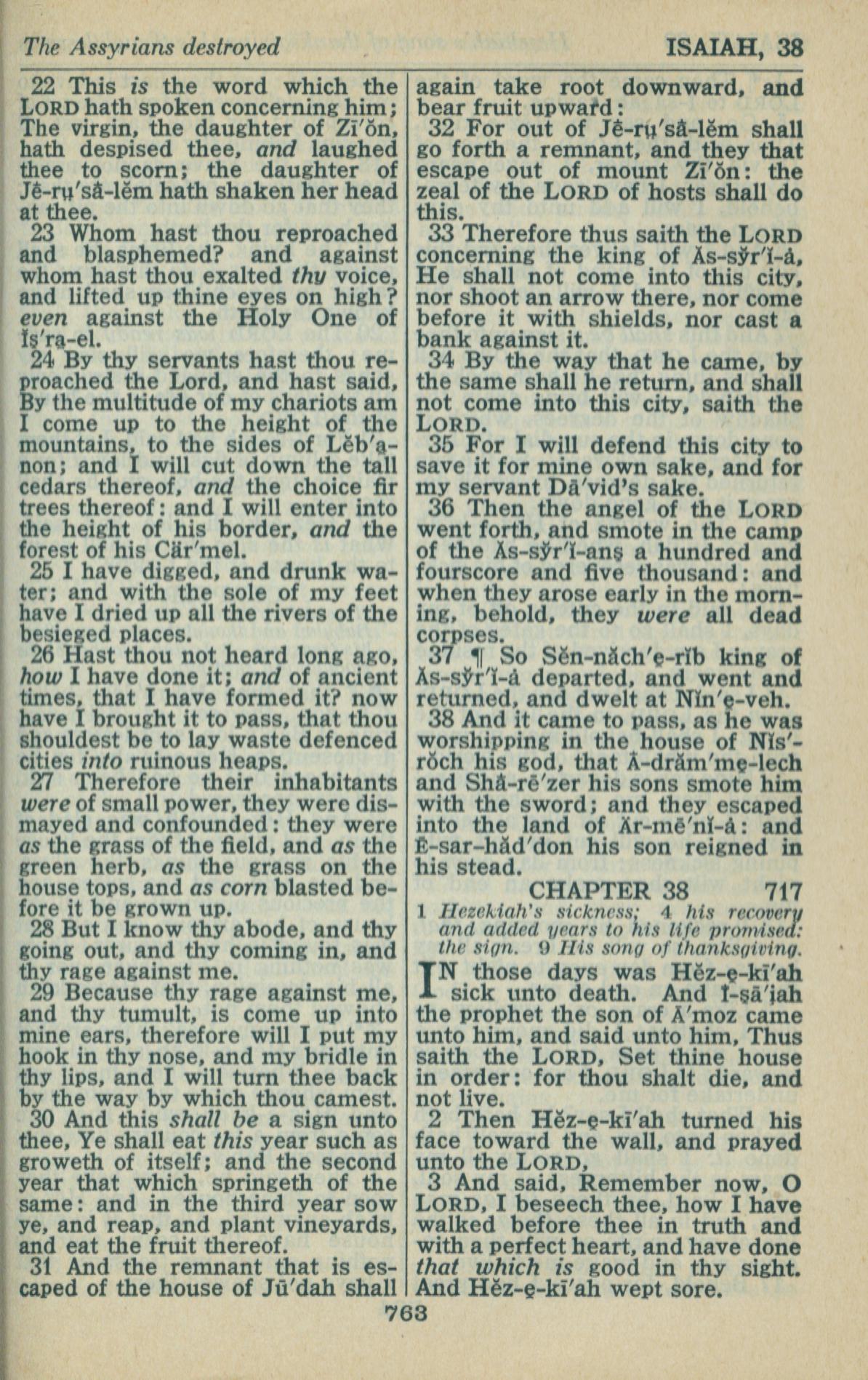 1946年King James Version 以賽亞書 37 章 22 節到 38 章 3 節