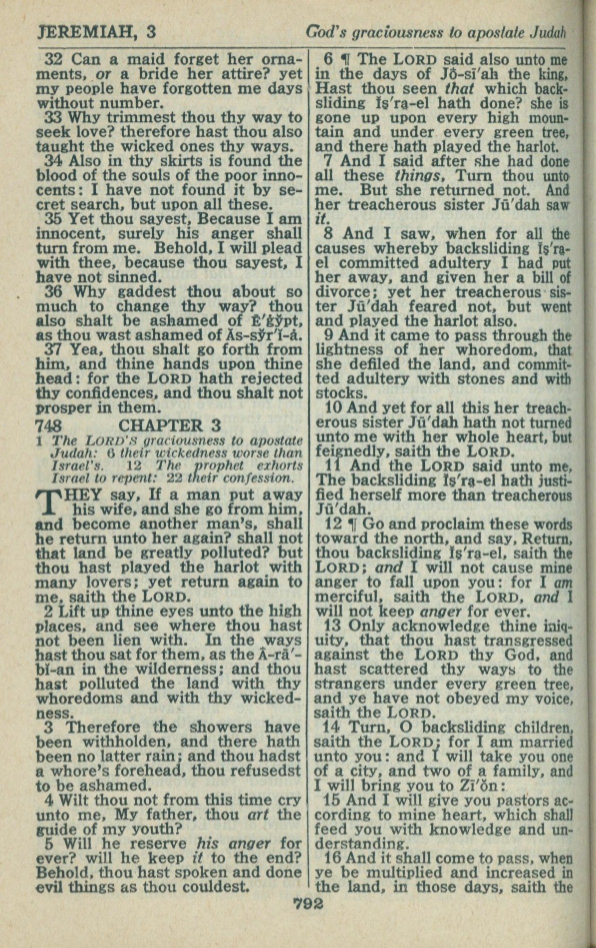 1946年King James Version 耶利米書 2 章 32 節到 3 章 16 節