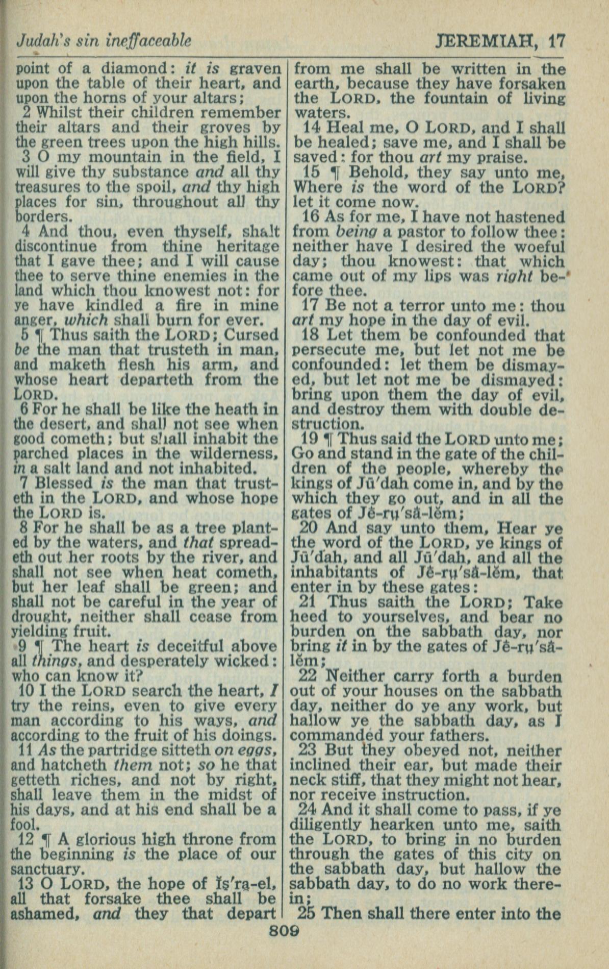 1946年King James Version 耶利米書 17 章 2 節到 17 章 25 節