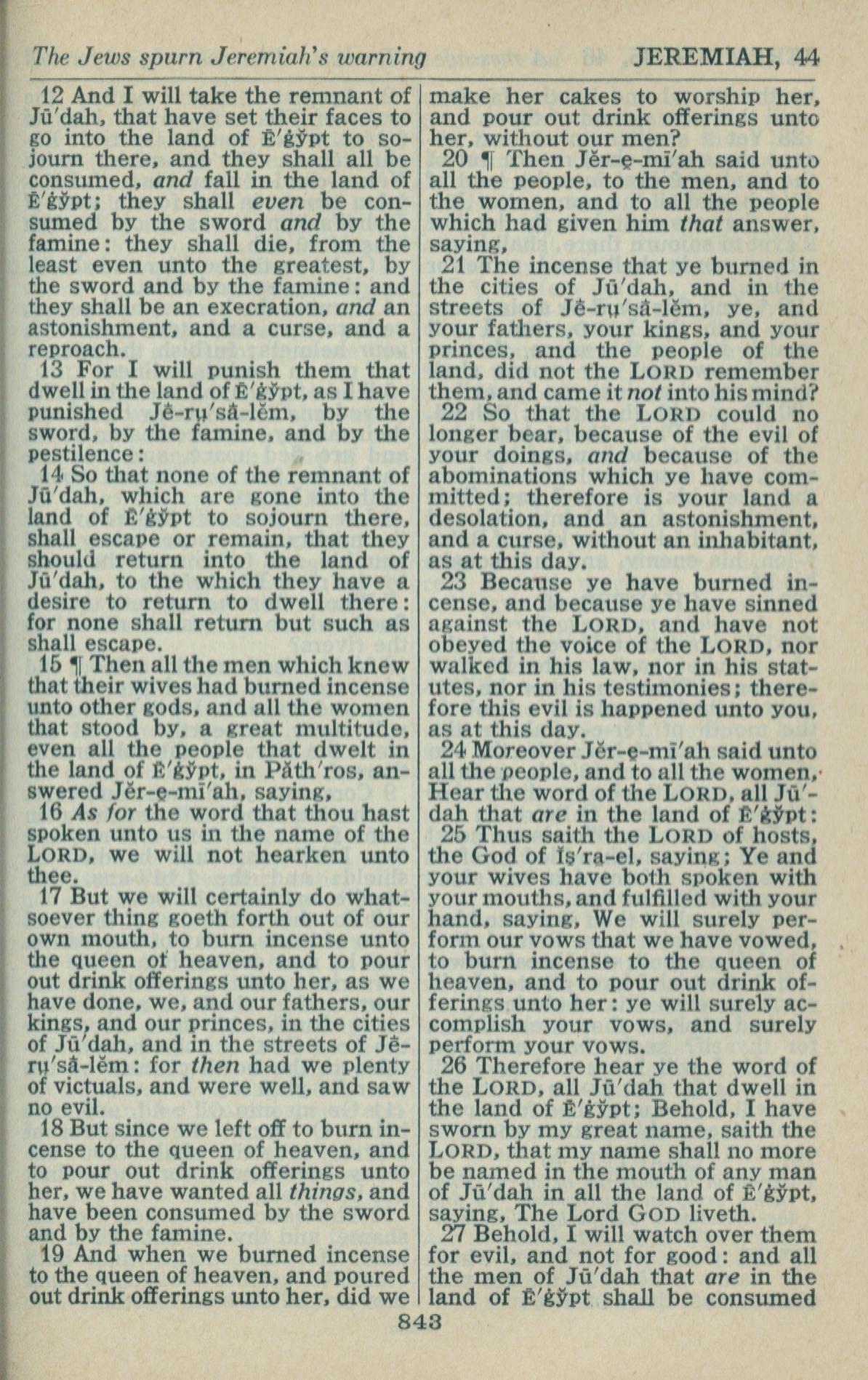 1946年King James Version 耶利米書 44 章 12 節到 44 章 27 節