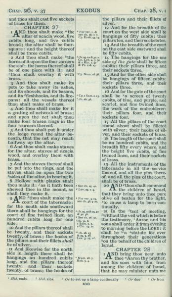 1898年Revised Version 出埃及記 27 章 1 節到 28 章 1 節