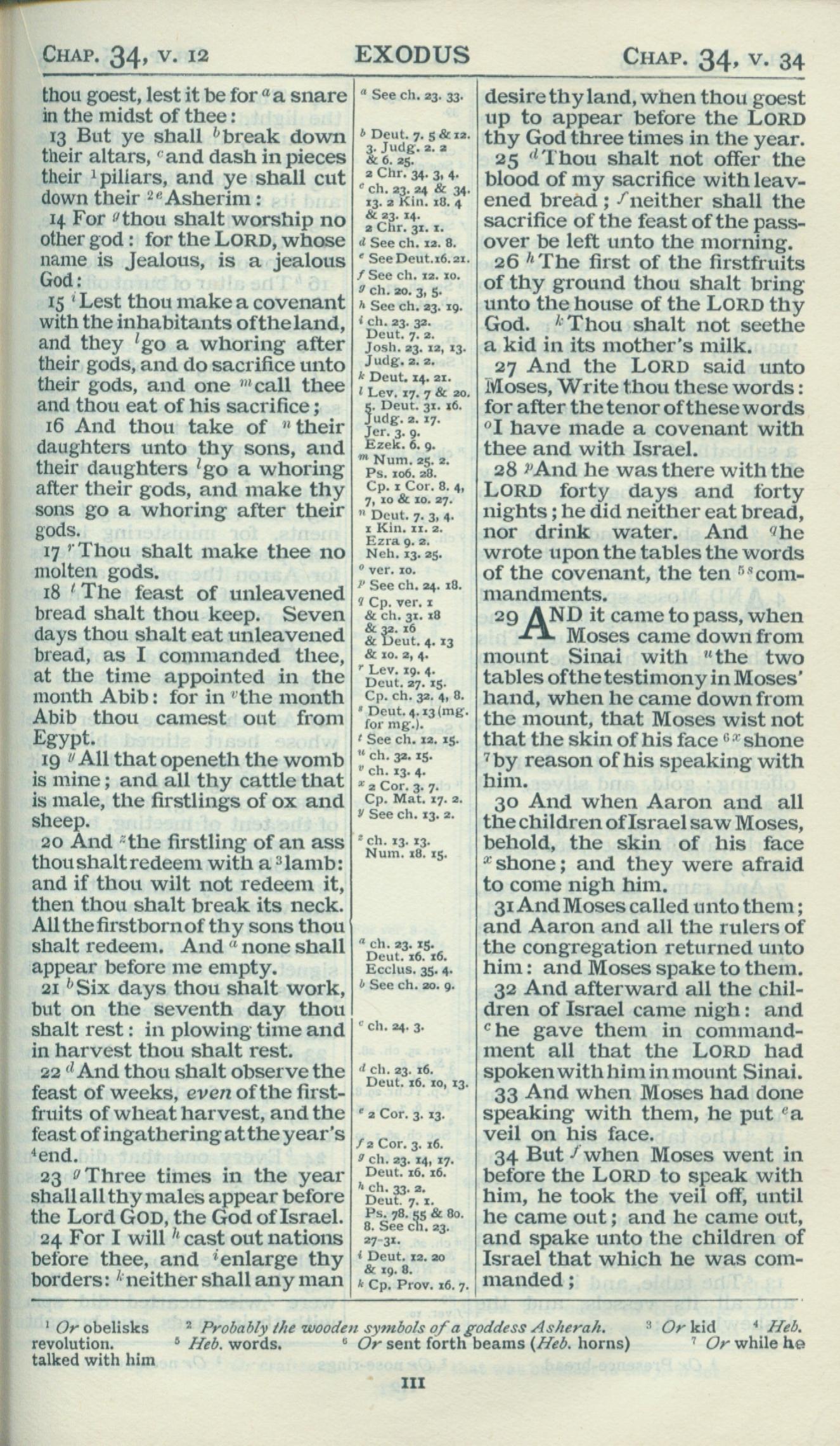 1898年Revised Version 出埃及記 34 章 13 節到 34 章 34 節