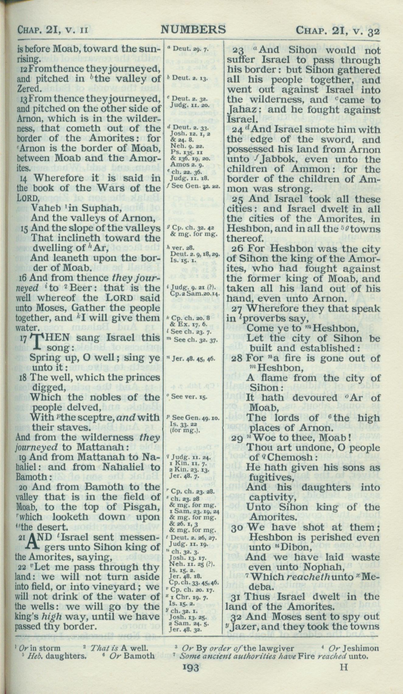 1898年Revised Version 民數記 21 章 12 節到 21 章 32 節