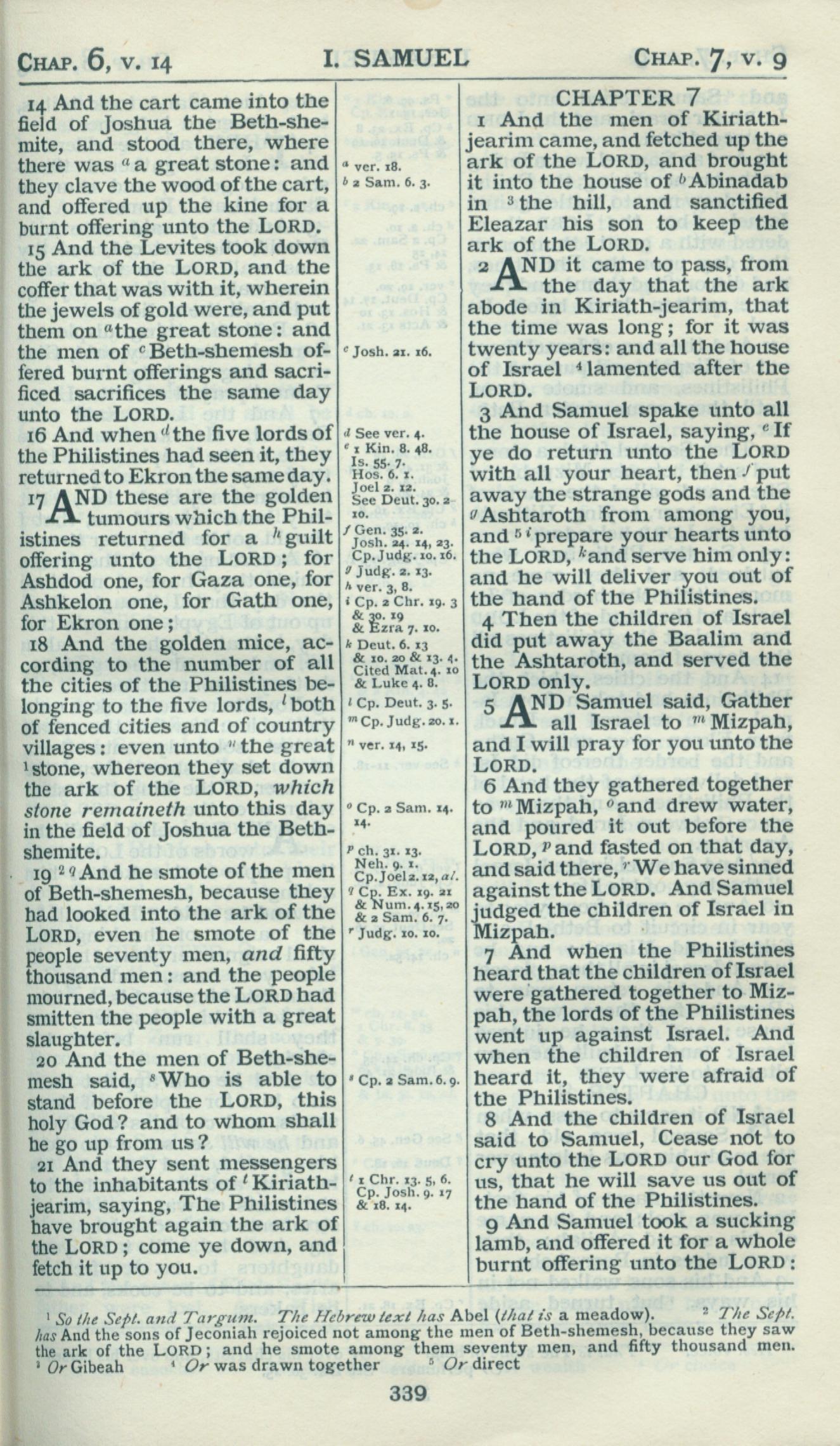 1898年Revised Version 撒母耳記上 6 章 14 節到 7 章 9 節