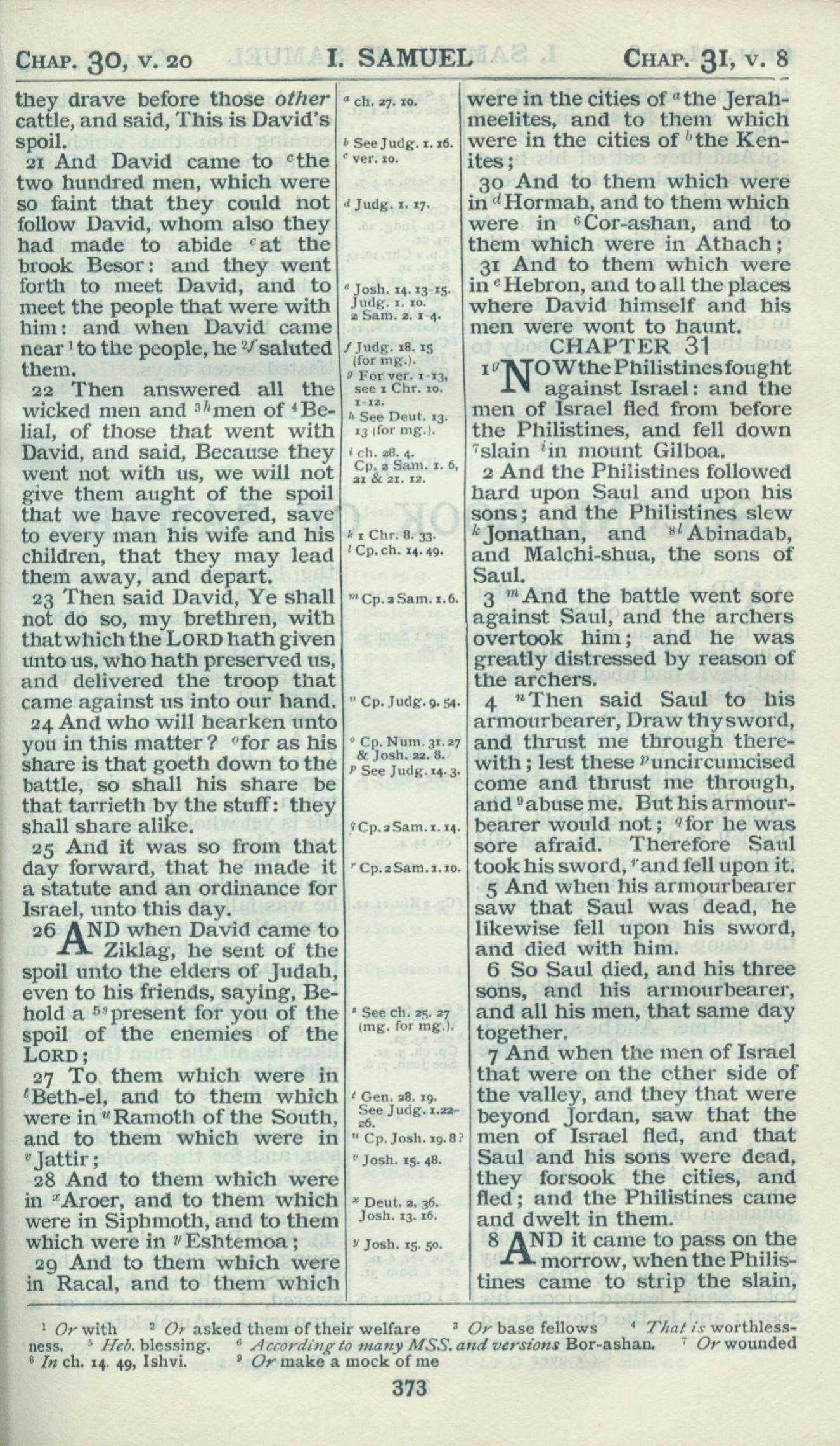 1898年Revised Version 撒母耳記上 30 章 21 節到 31 章 8 節