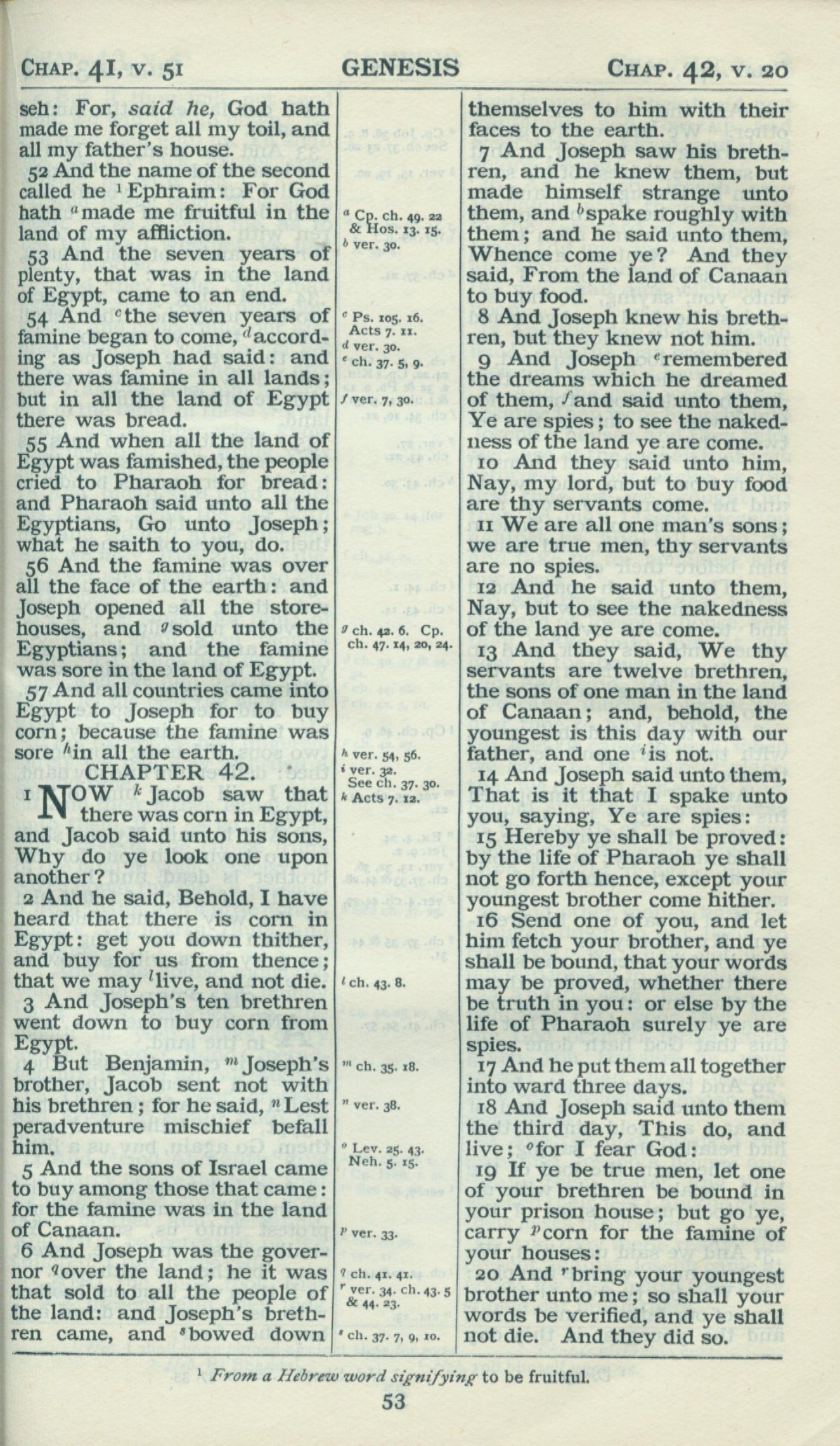 1898年Revised Version 創世記 41 章 52 節到 42 章 20 節