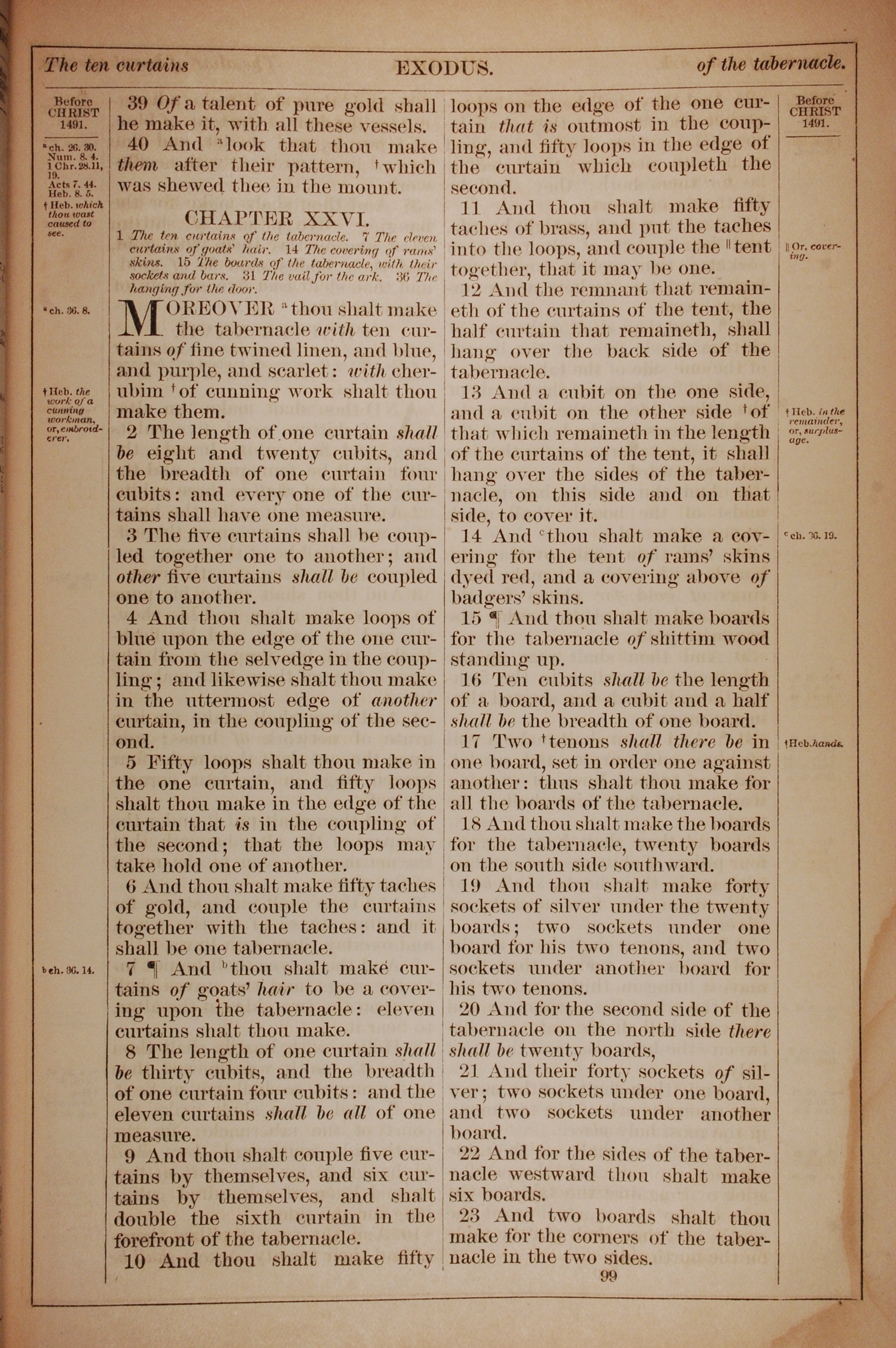 1882年Holy Bible 出埃及記 25 章 39 節到 26 章 23 節