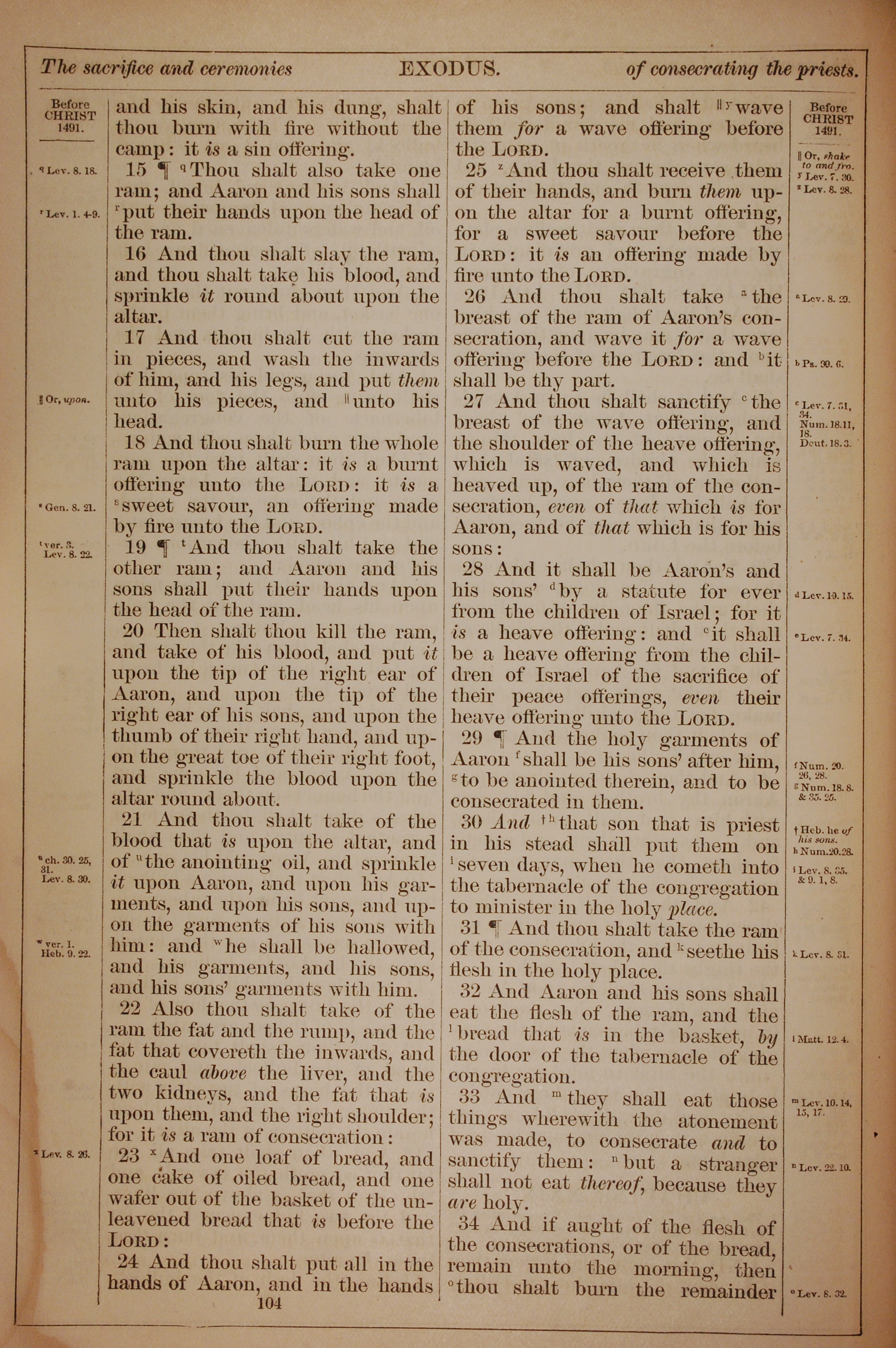 1882年Holy Bible 出埃及記 29 章 15 節到 29 章 34 節