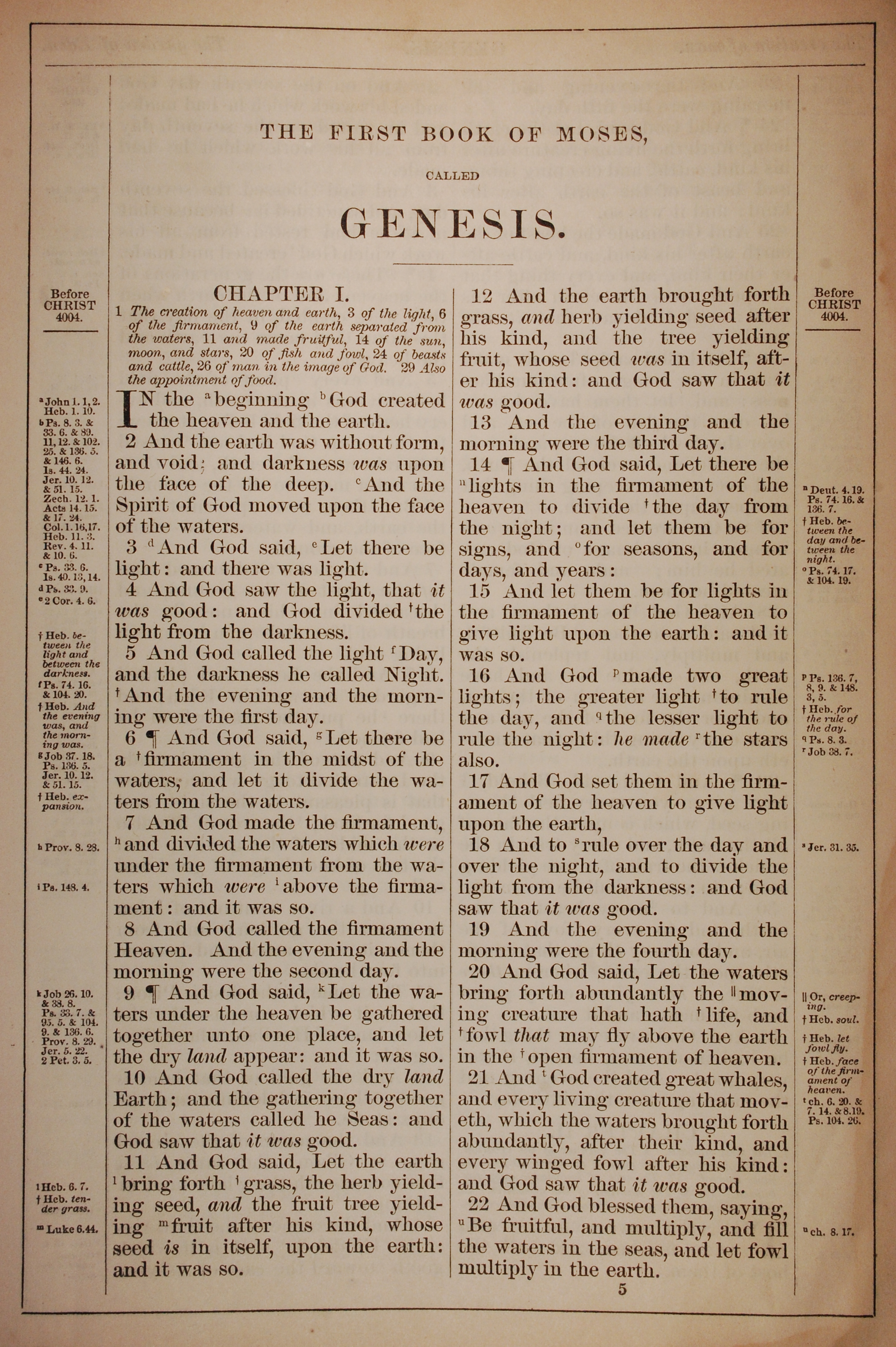 1882年Holy Bible 創世記 1 章 1 節到 1 章 22 節