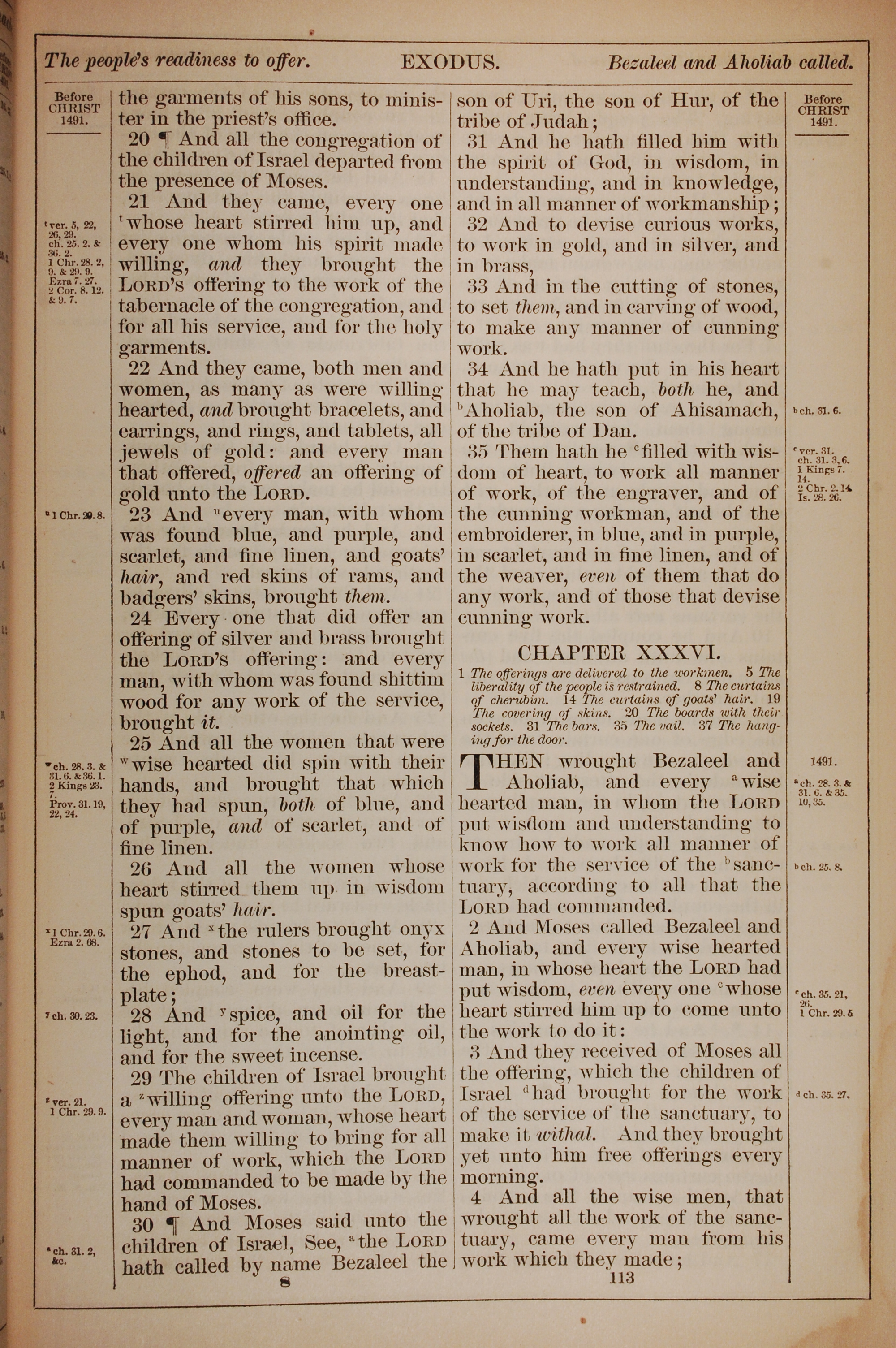 1882年Holy Bible 出埃及記 35 章 20 節到 36 章 4 節