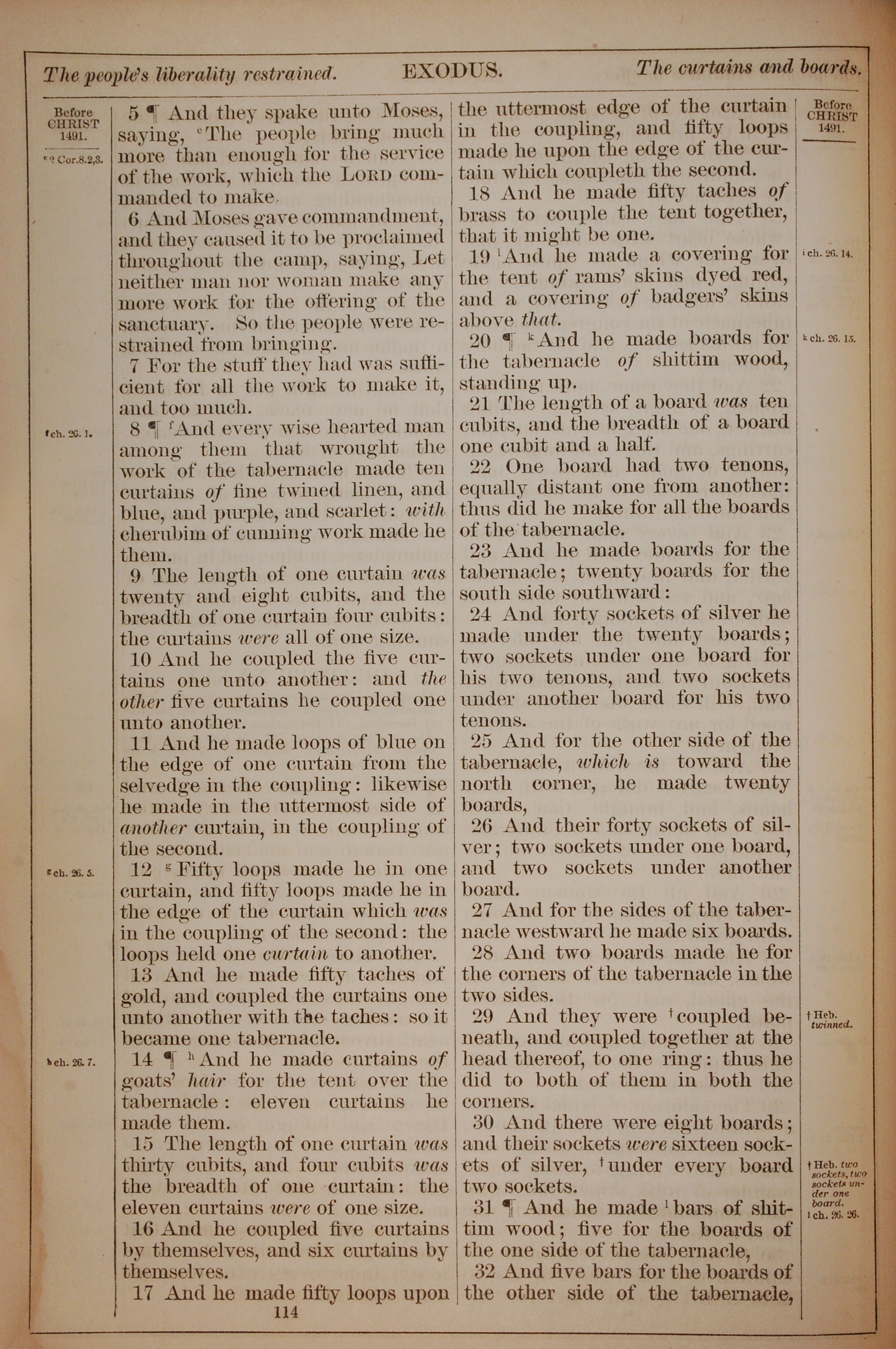 1882年Holy Bible 出埃及記 36 章 5 節到 36 章 32 節
