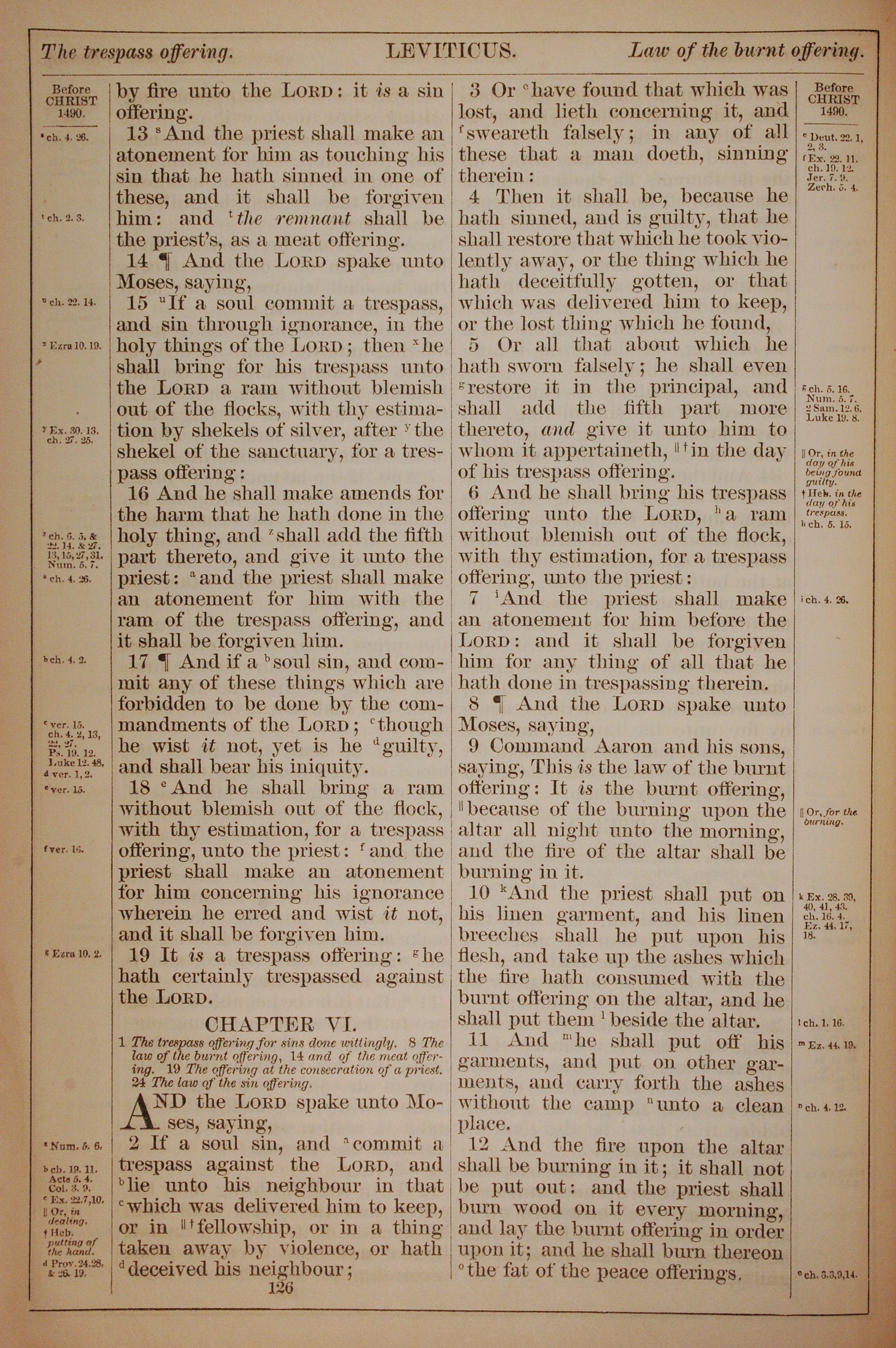 1882年Holy Bible 利未記 5 章 13 節到 6 章 12 節