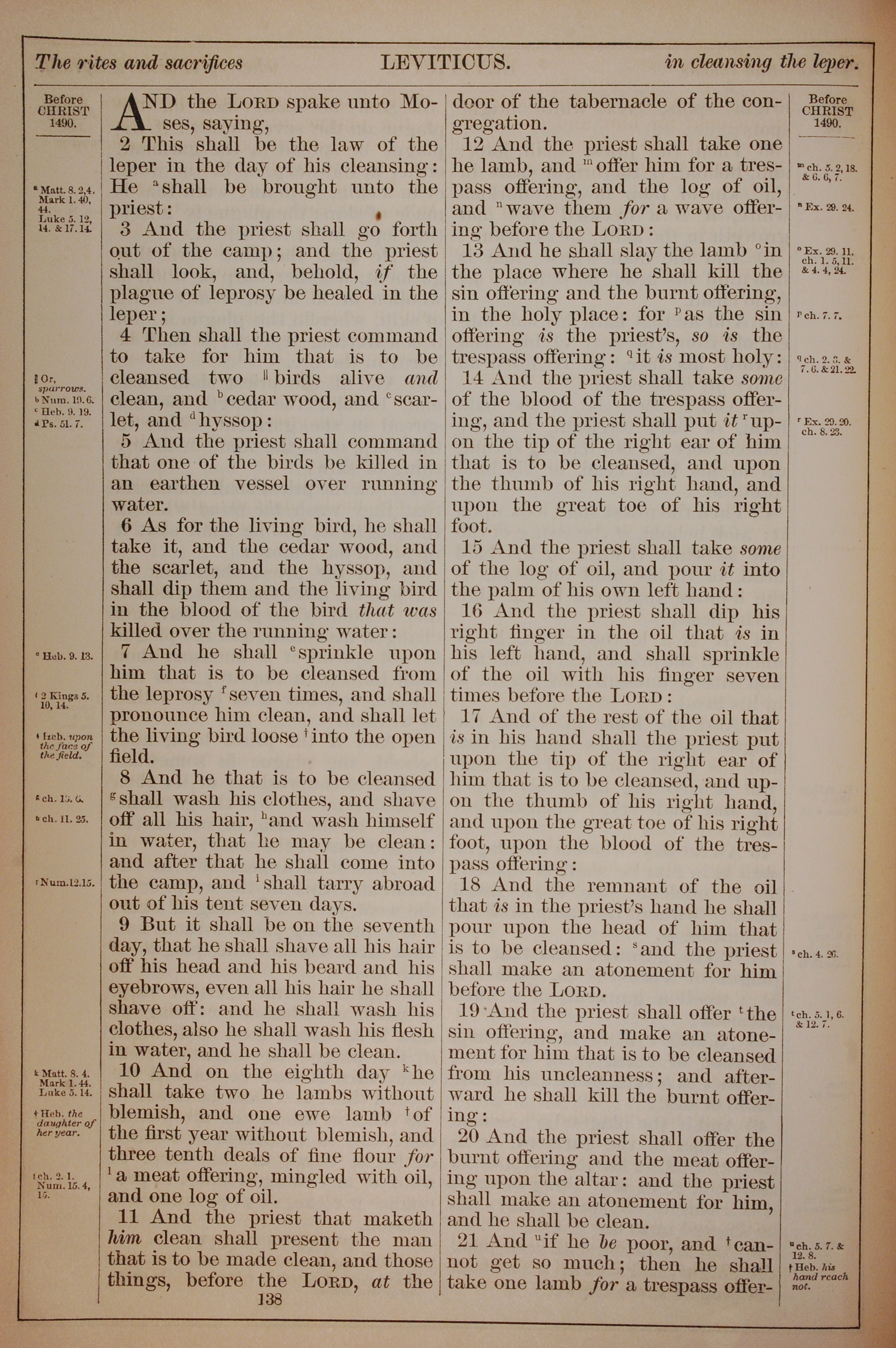 1882年Holy Bible 利未記 14 章 1 節到 14 章 21 節