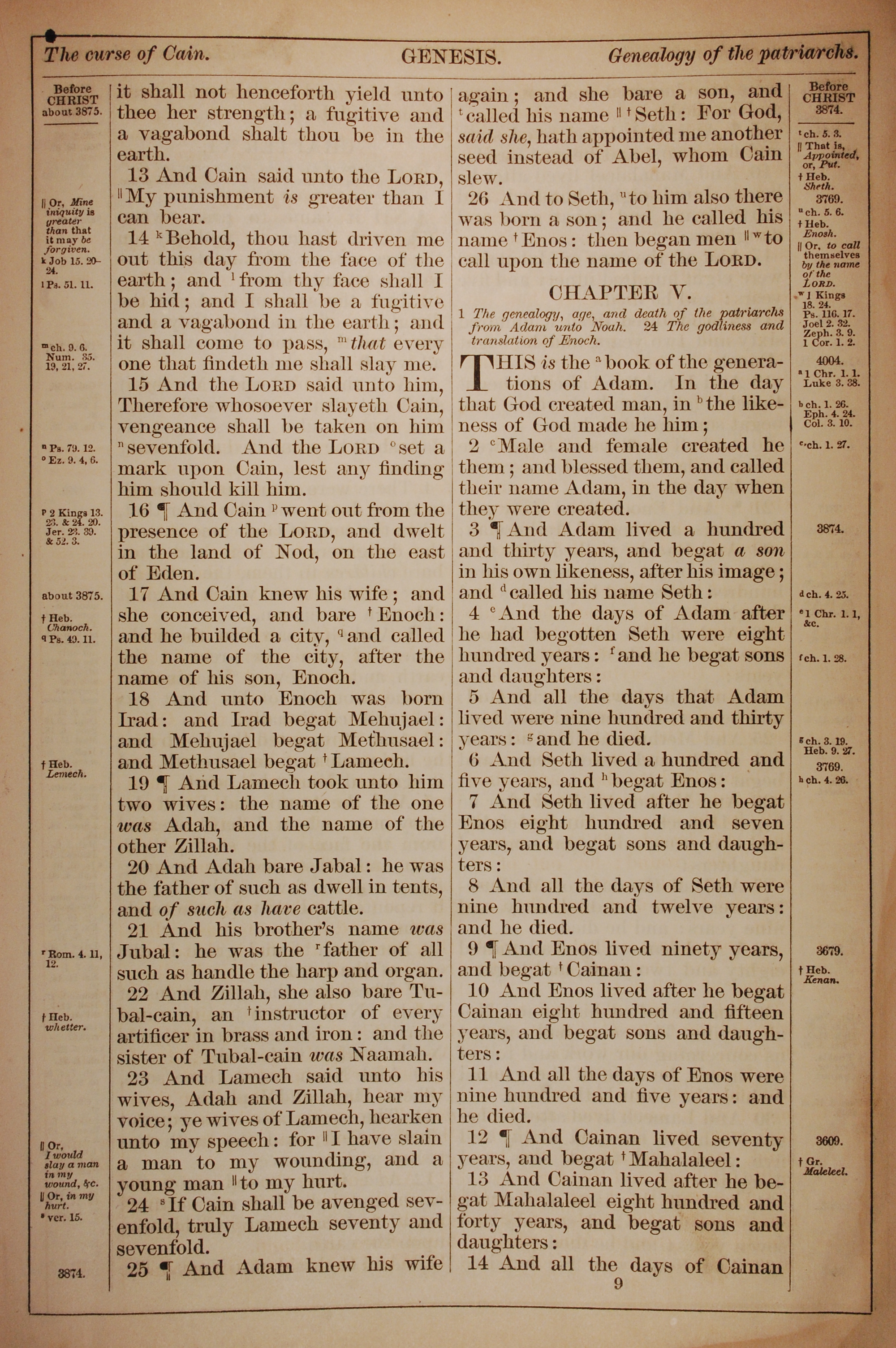1882年Holy Bible 創世記 4 章 13 節到 5 章 14 節