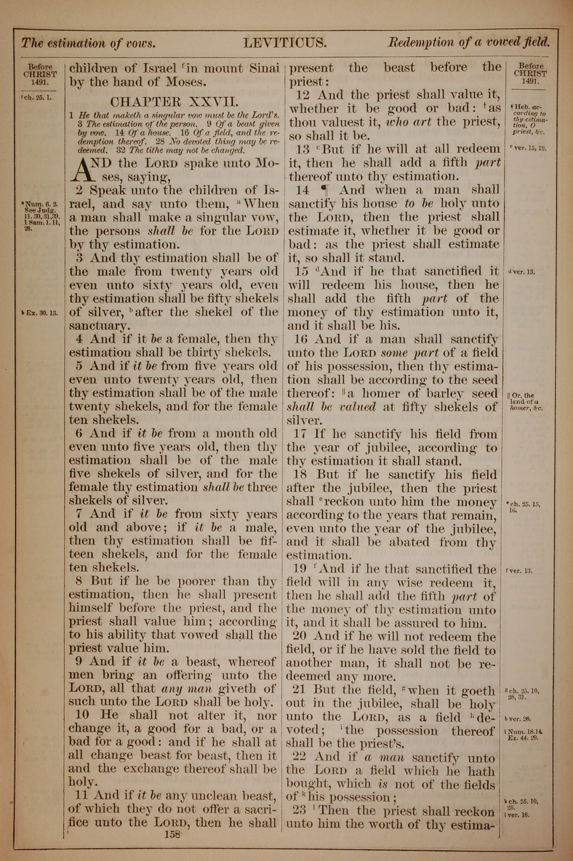 1882年Holy Bible 利未記 27 章 1 節到 27 章 23 節