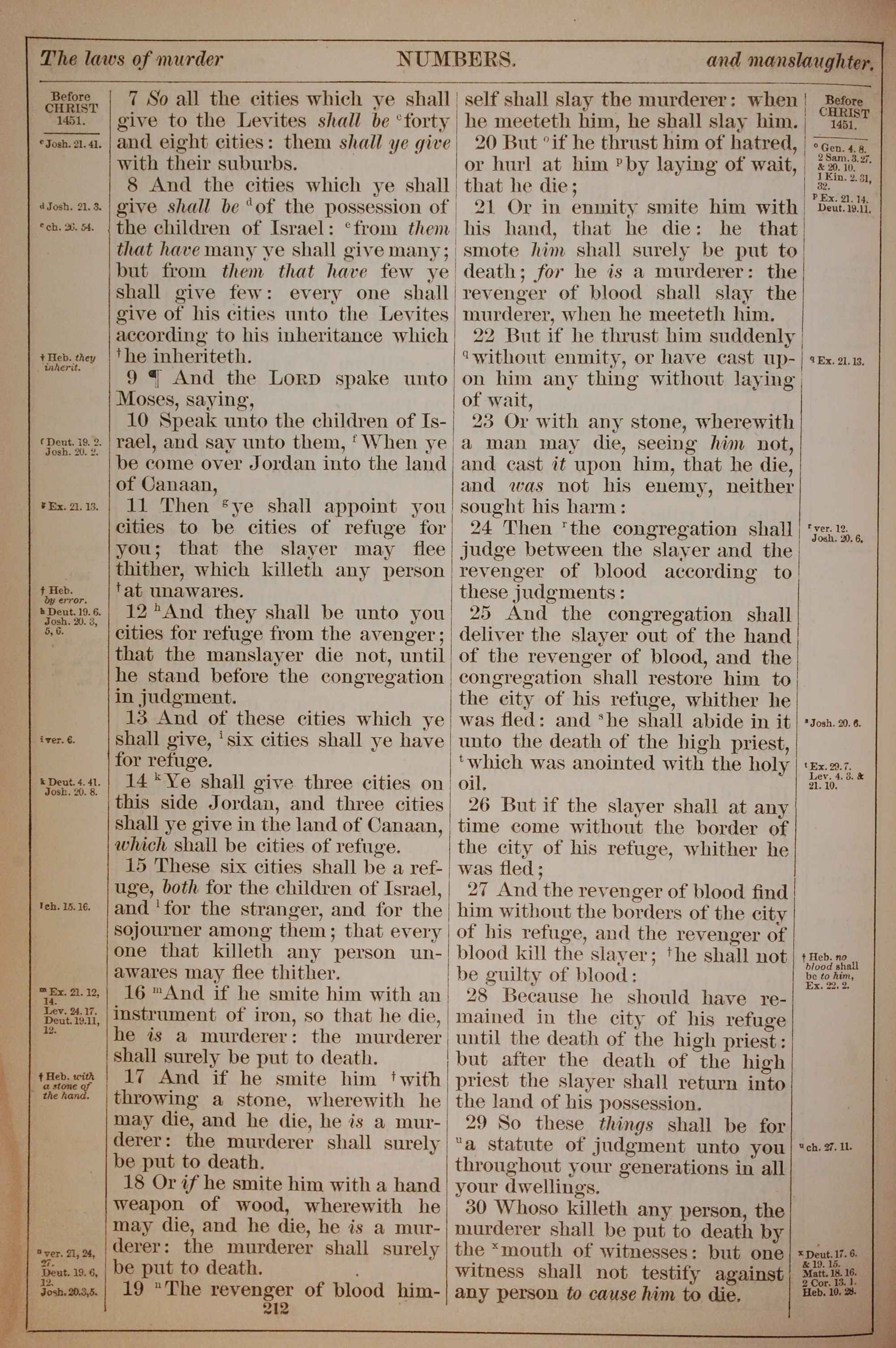 1882年Holy Bible 民數記 35 章 7 節到 35 章 30 節