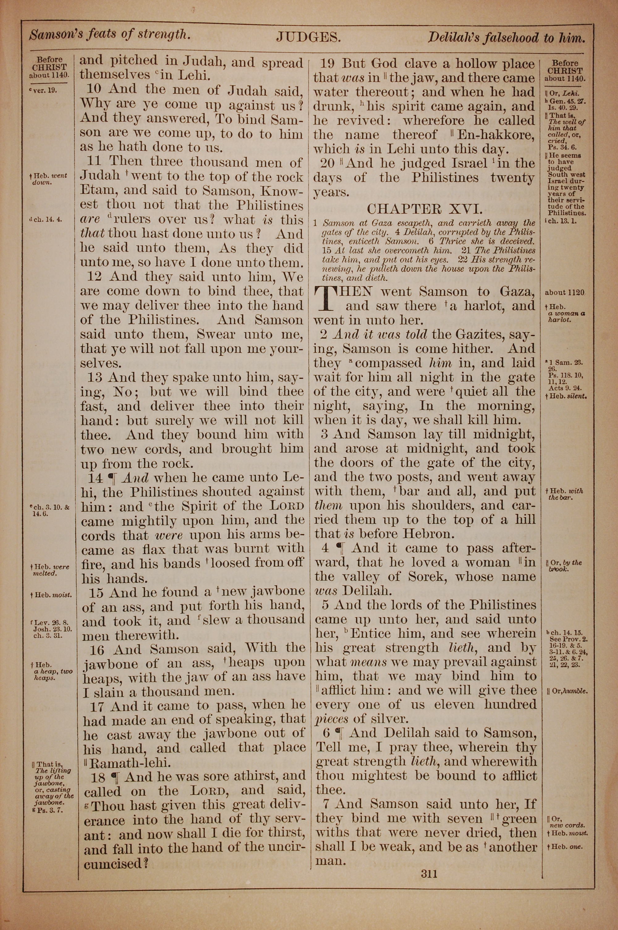 1882年Holy Bible 士師記 15 章 10 節到 16 章 7 節