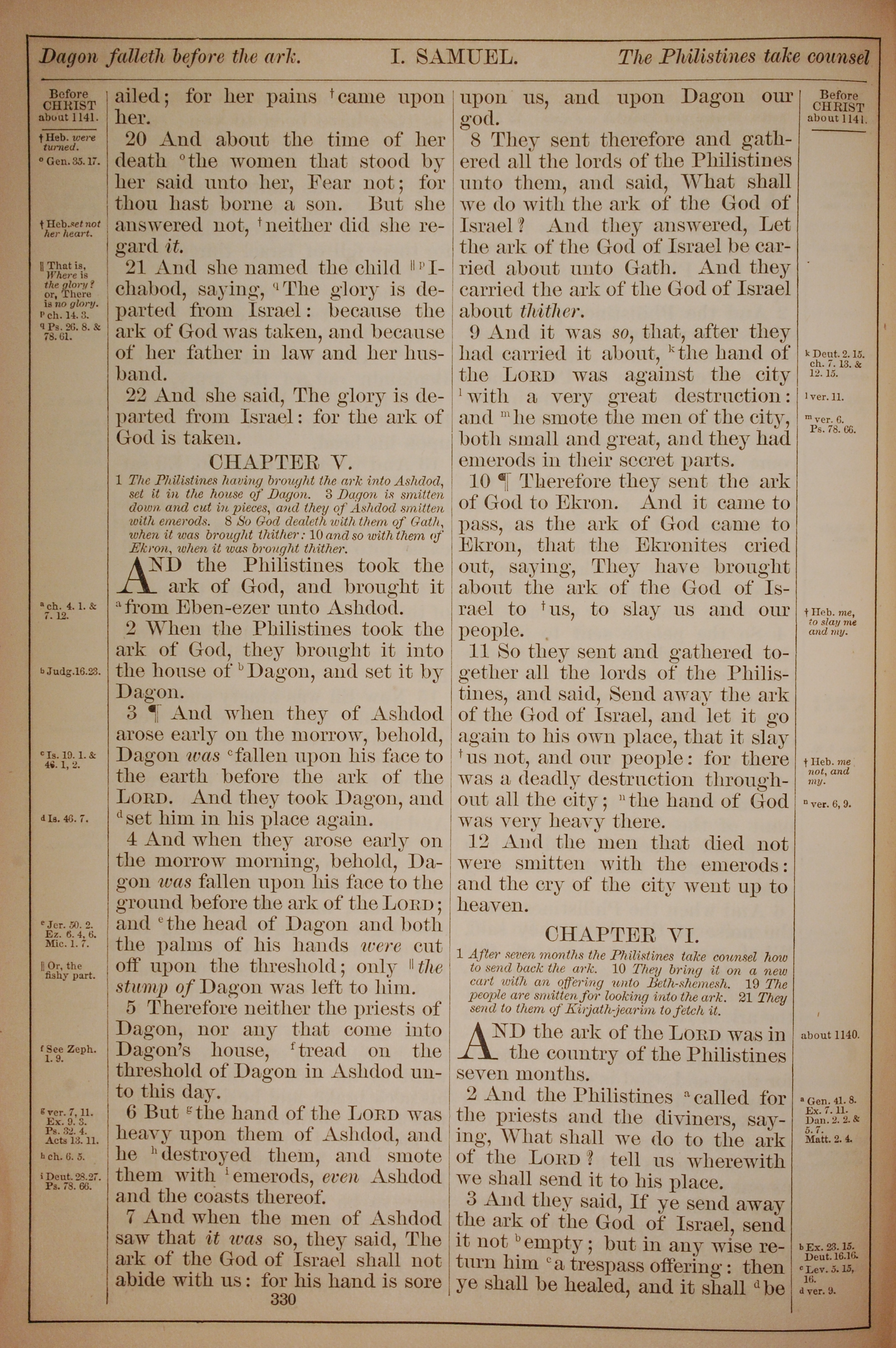 1882年Holy Bible 撒母耳記上 4 章 20 節到 6 章 3 節