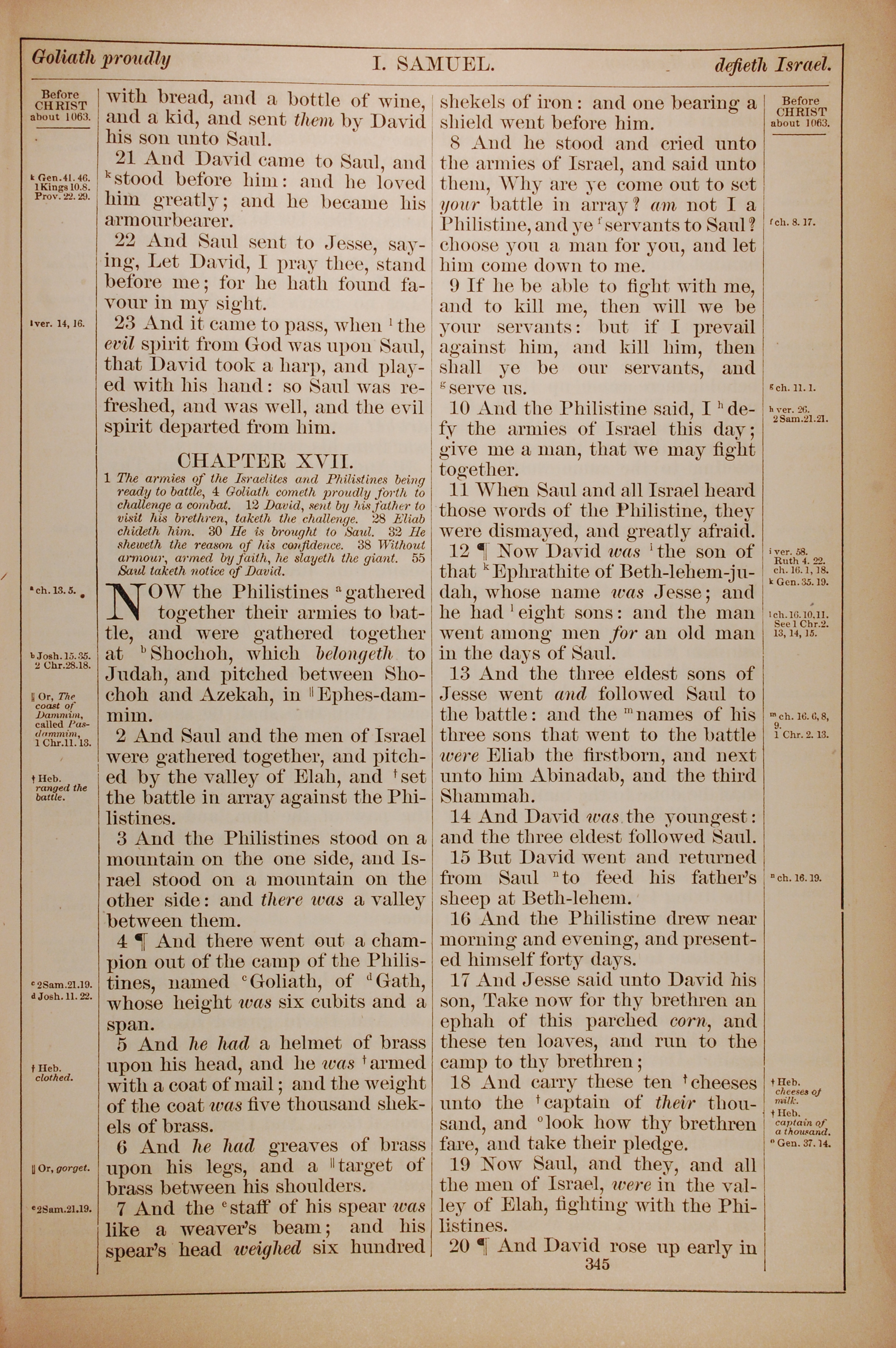 1882年Holy Bible 撒母耳記上 16 章 21 節到 17 章 19 節