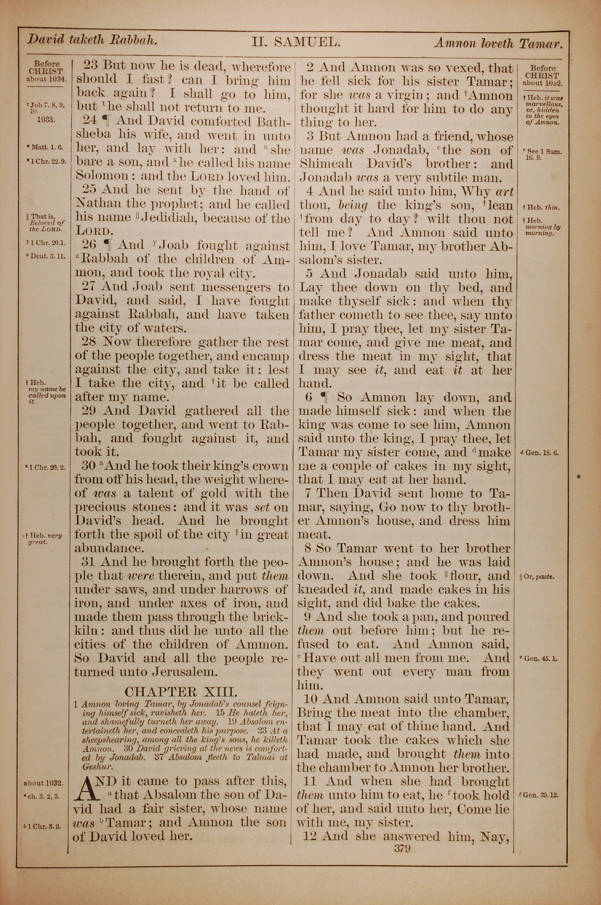 1882年Holy Bible 撒母耳記下 12 章 23 節到 13 章 12 節