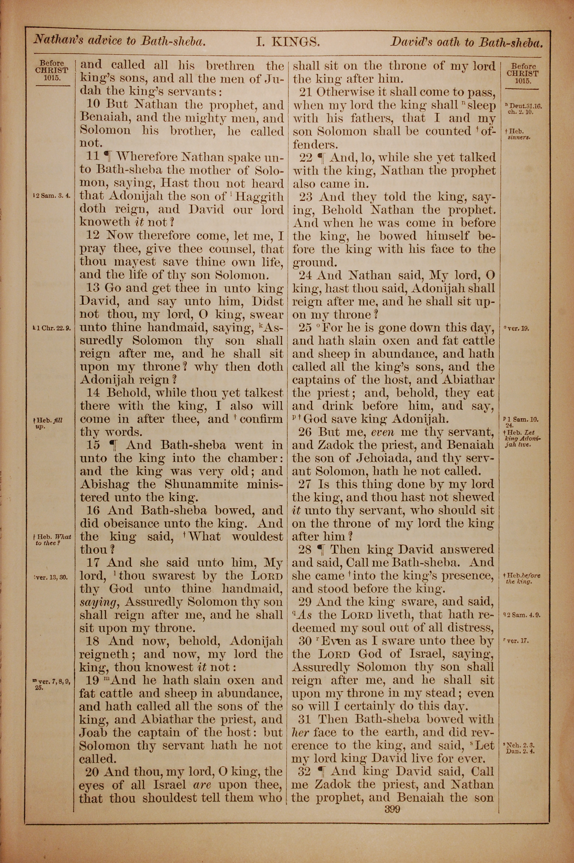 1882年Holy Bible 列王紀上 1 章 10 節到 1 章 32 節