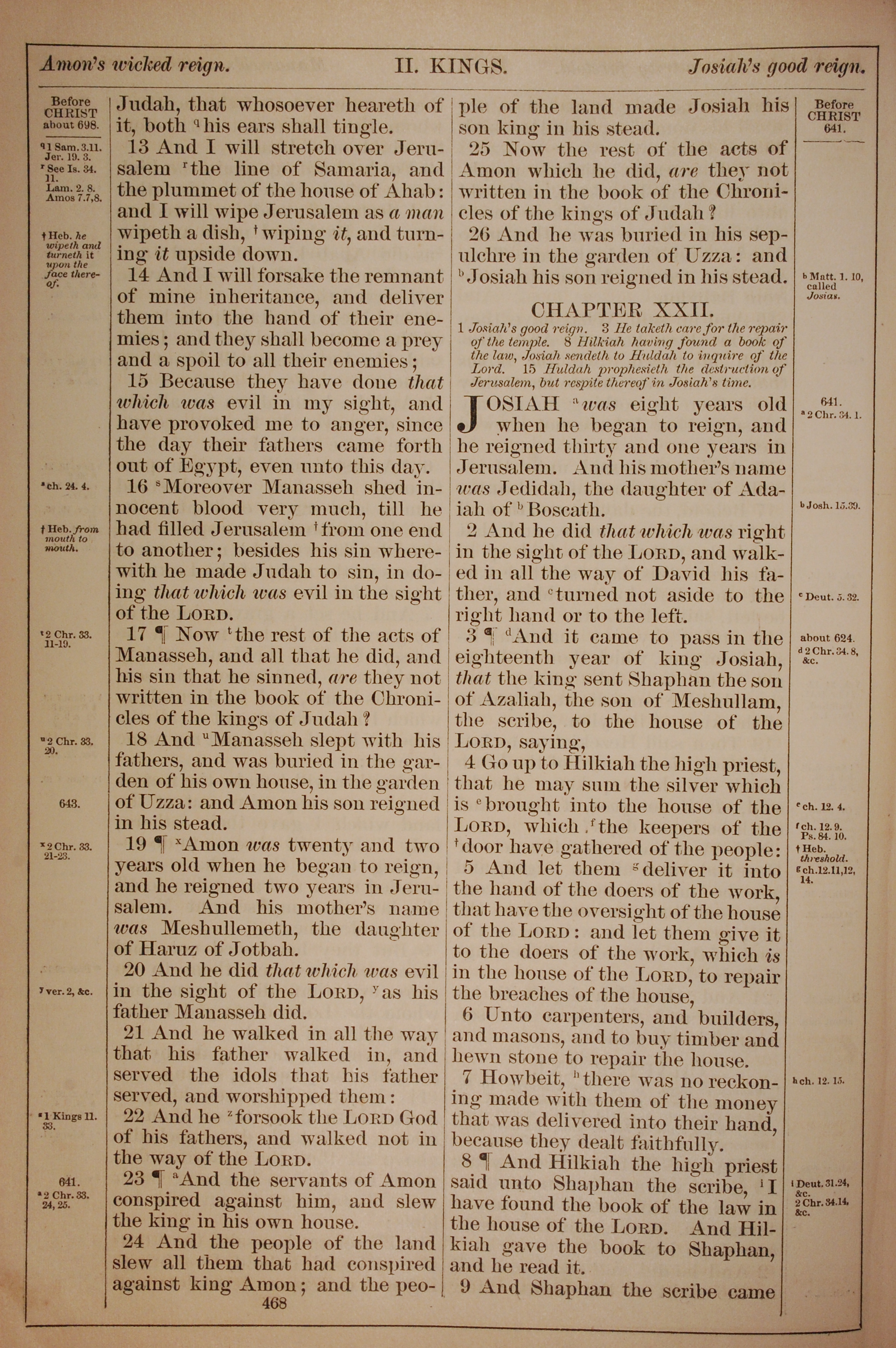 1882年Holy Bible 列王紀下 21 章 13 節到 22 章 9 節