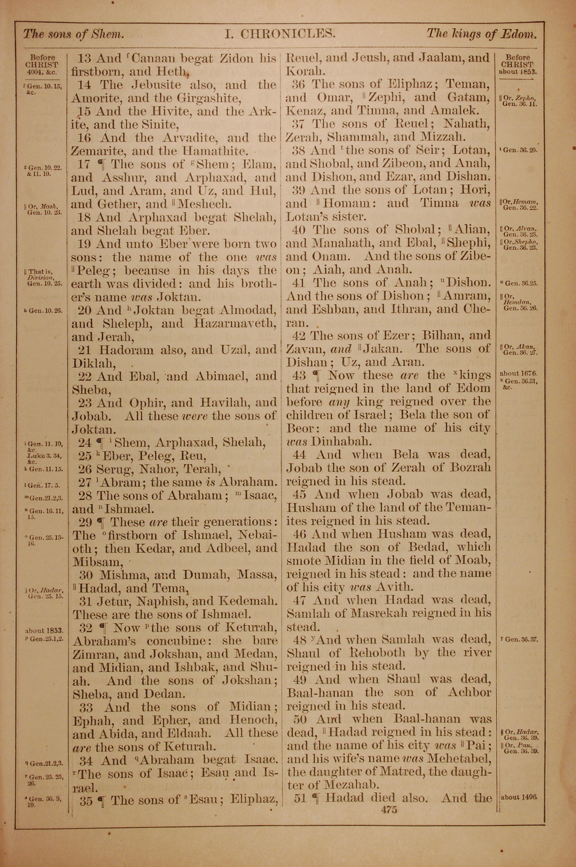 1882年Holy Bible 歷代志上 1 章 13 節到 1 章 51 節