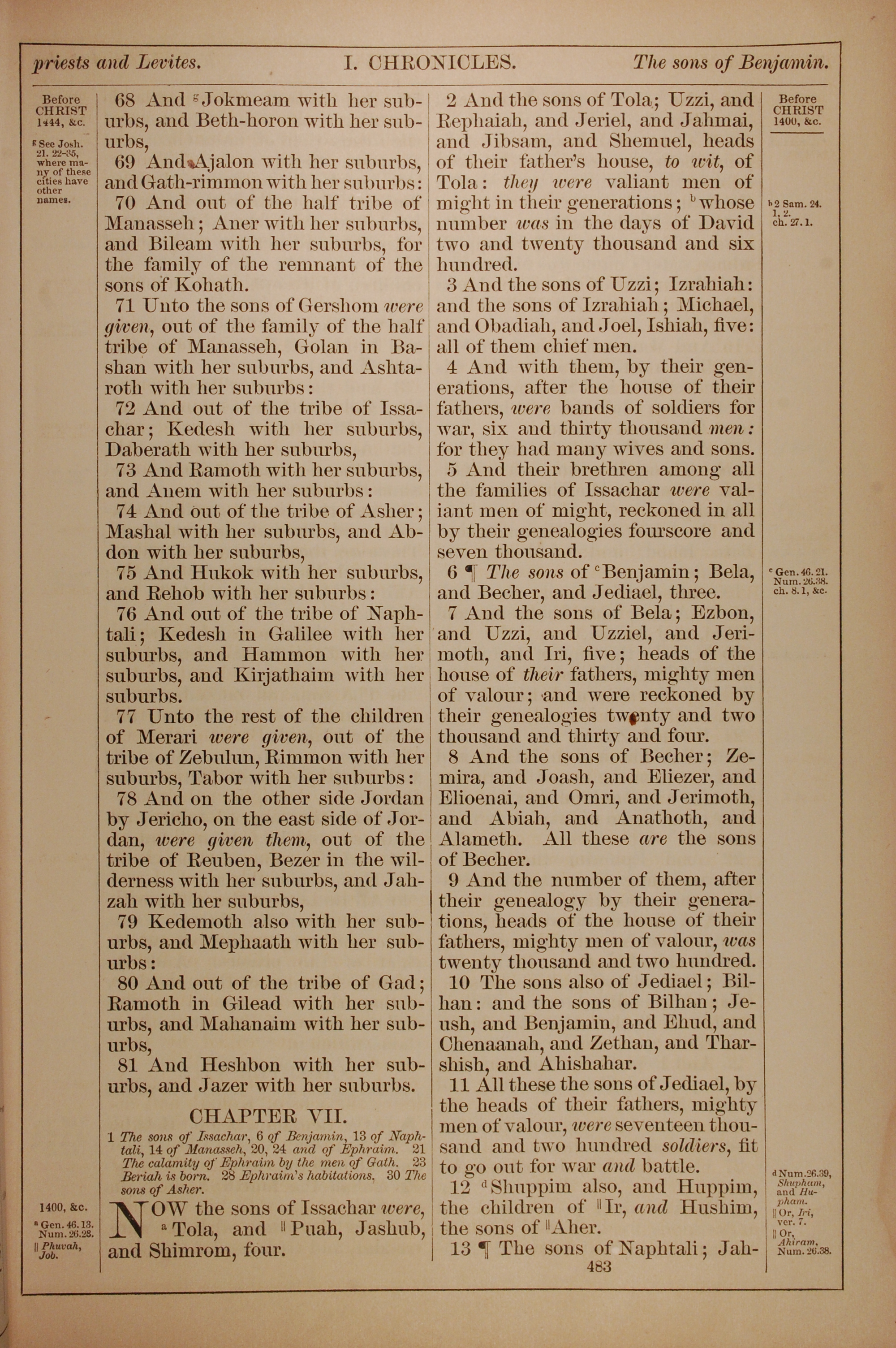 1882年Holy Bible 歷代志上 6 章 68 節到 7 章 13 節