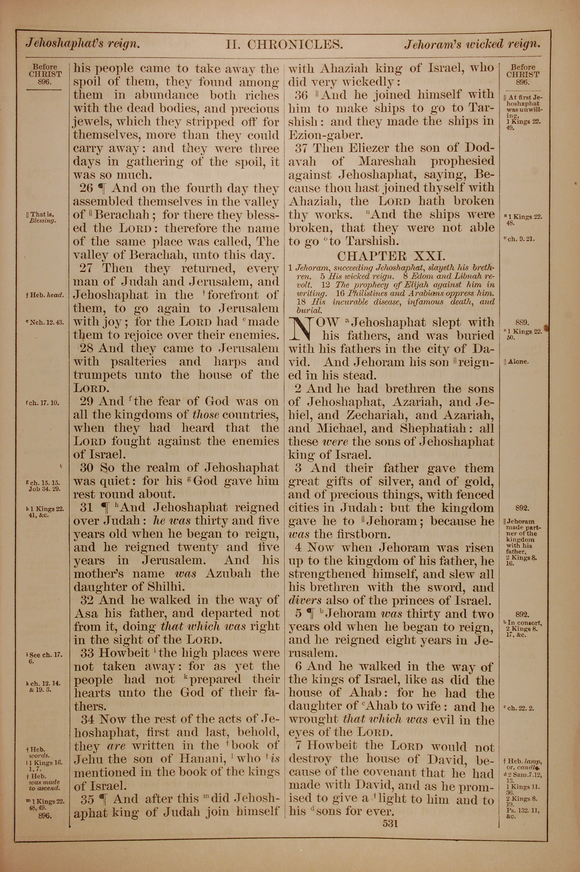 1882年Holy Bible 歷代志下 20 章 25 節到 21 章 7 節