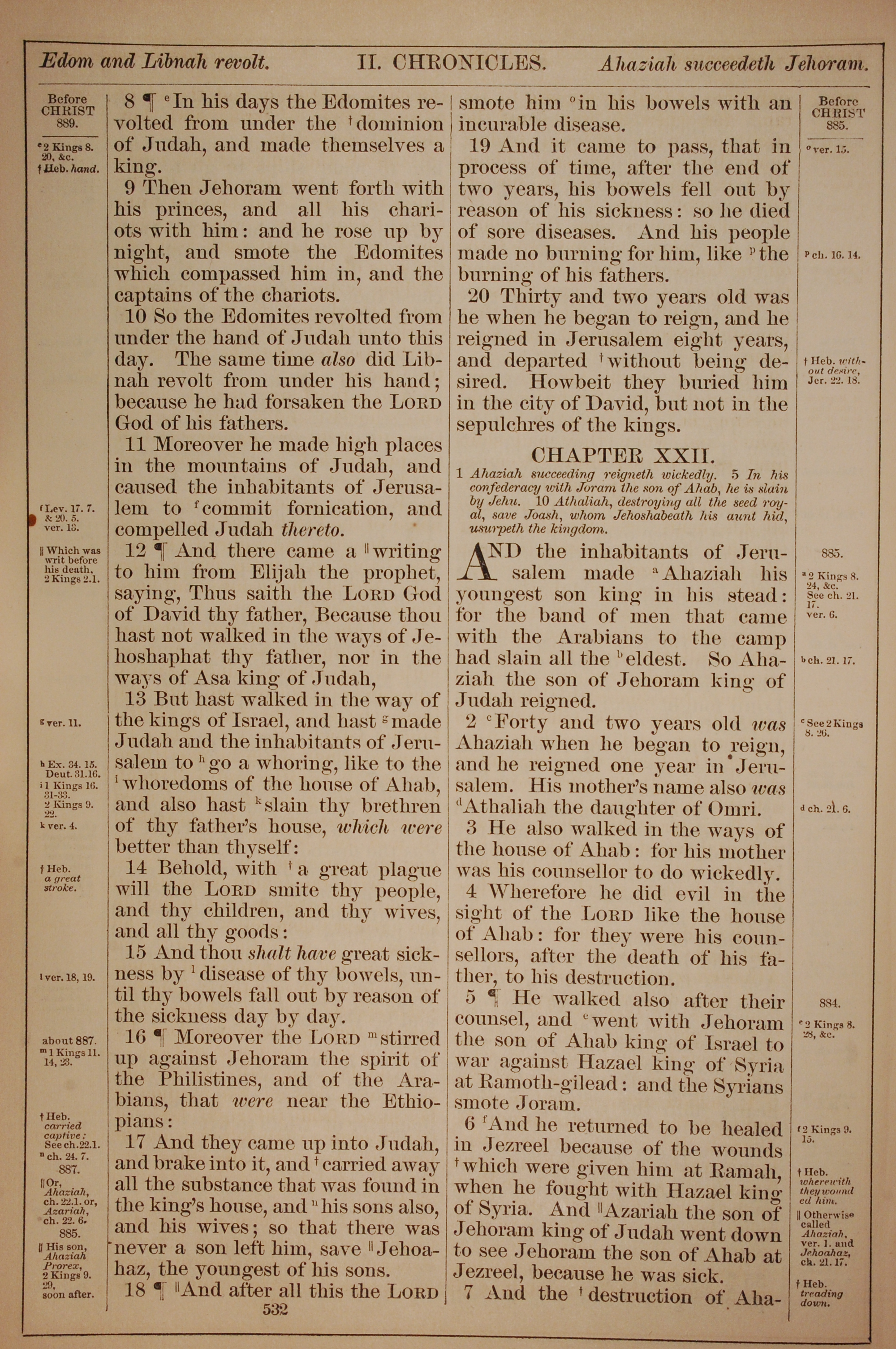 1882年Holy Bible 歷代志下 21 章 8 節到 22 章 6 節